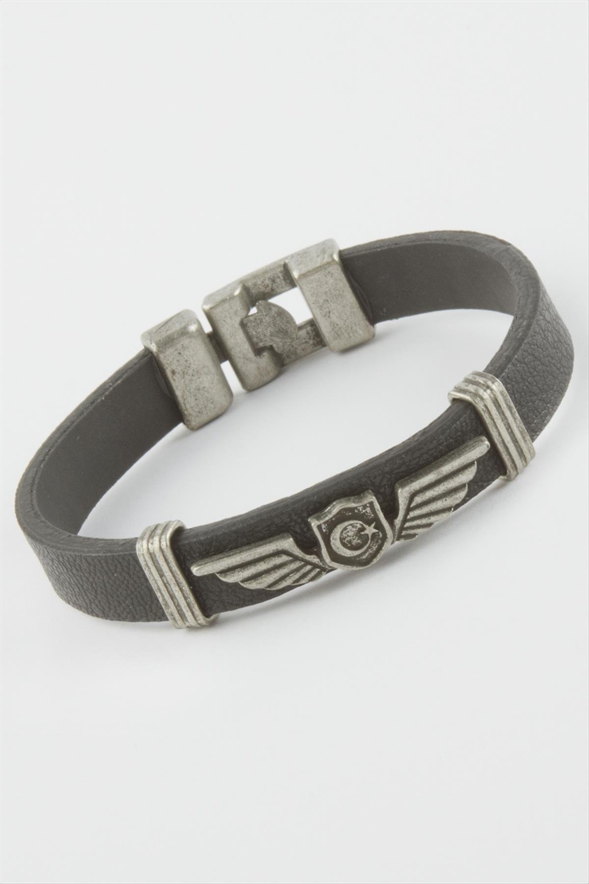 Ay Yıldız Suni Deri Bileklik-Siyah