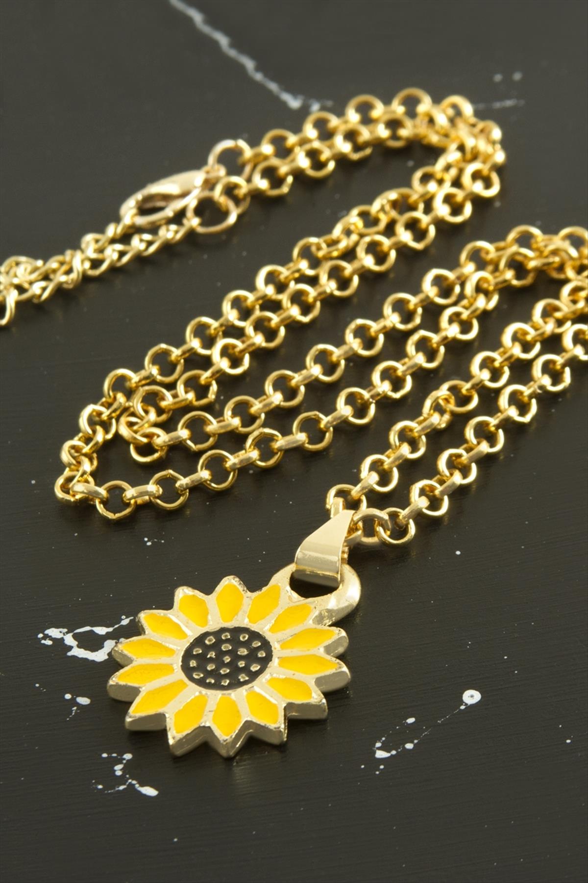 Ayçiçeği Mineli Kutulu Kolye-Sarı