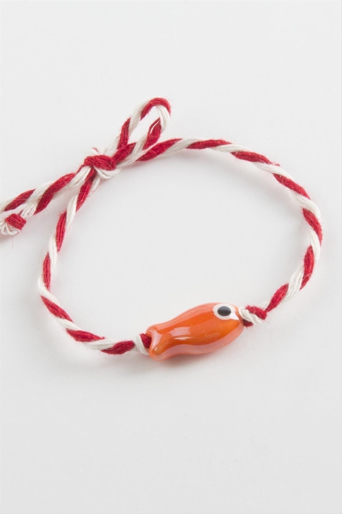 Balık Cam Boncuk Marteniçka İp Bileklik-Turuncu