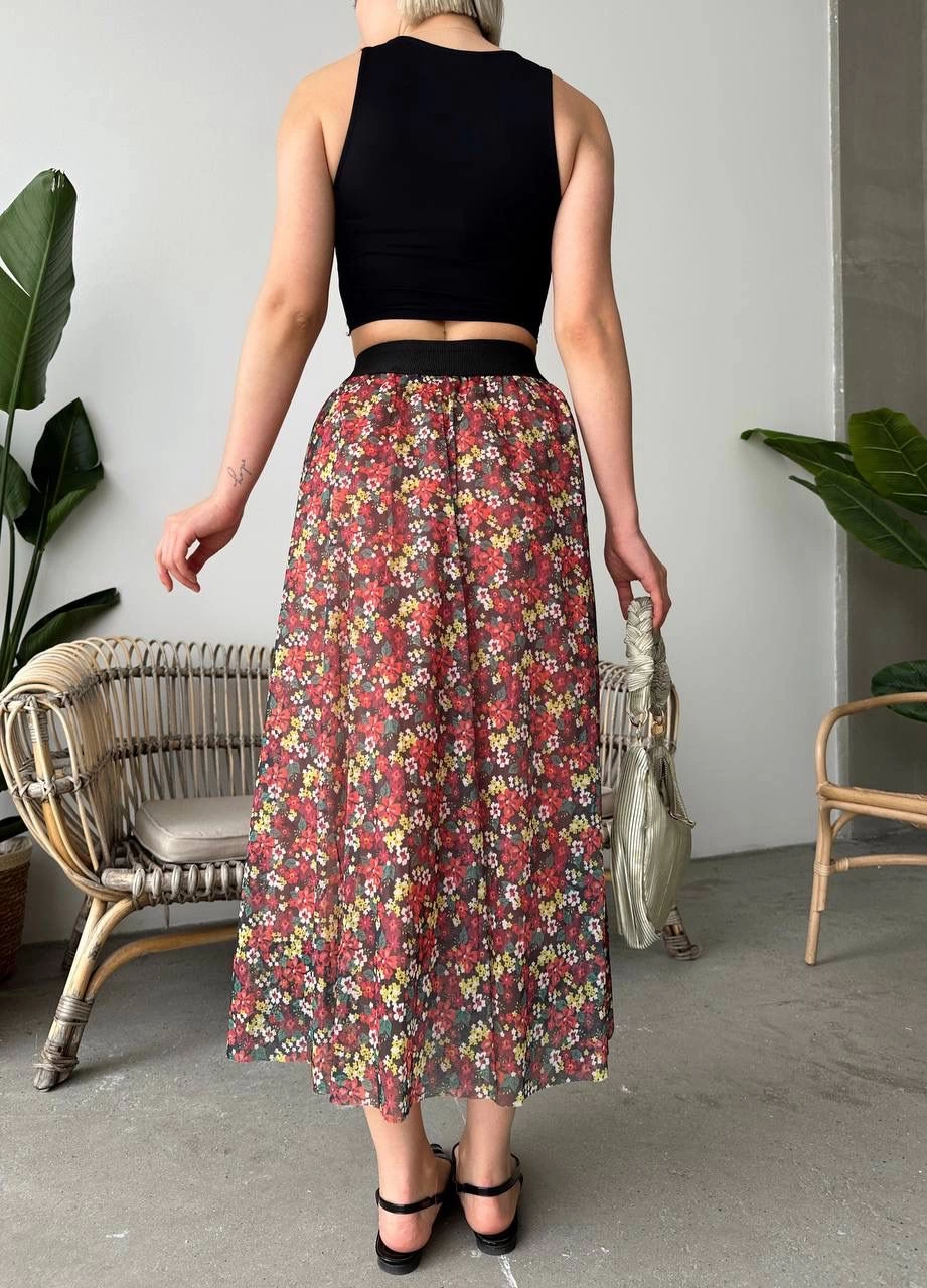 Baskılı astarlı uzun etek Kırmızı (Beden: S)