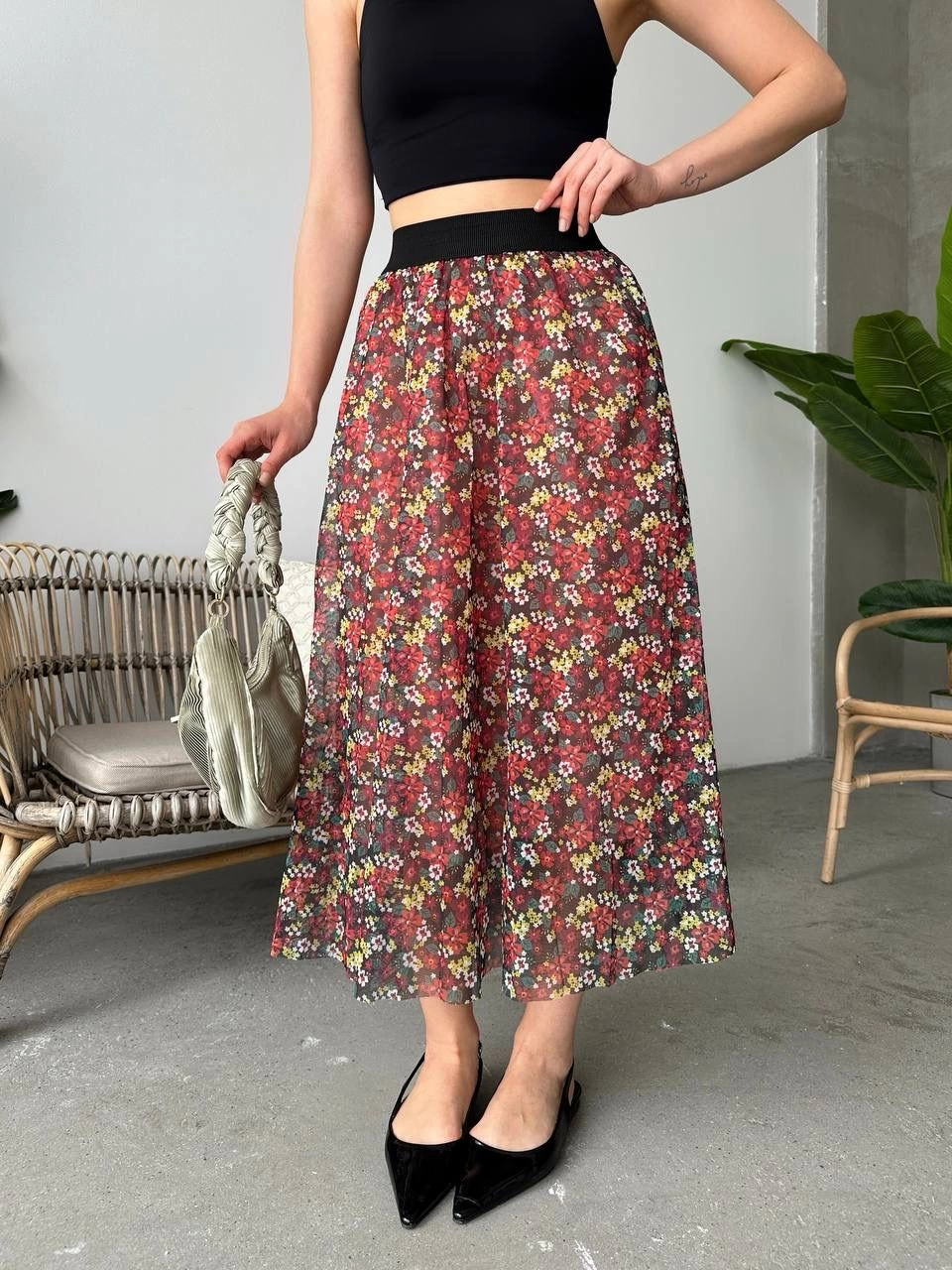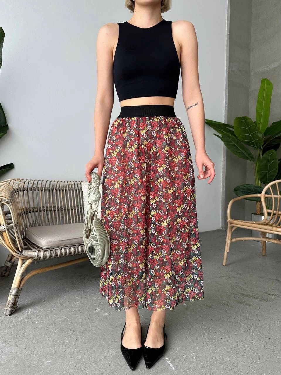 Baskılı Astarlı Uzun Etek Kırmızı (Beden: S)