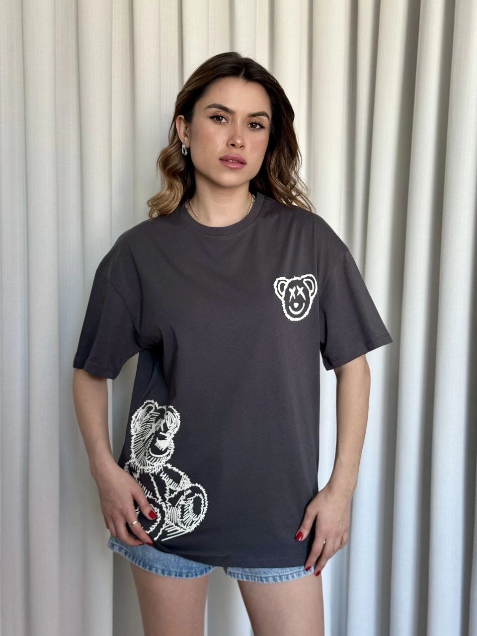 Baskılı ayıcıklı tişört Antrasit (Beden: M)