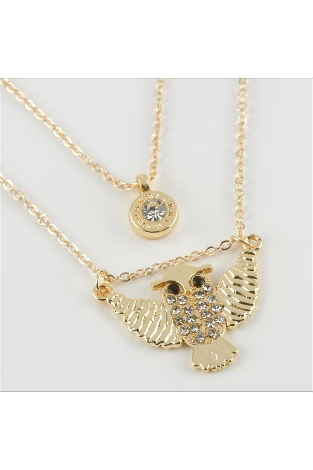 Baykuş Figürlü Yeni Sezon İkili Kolye-Sarı