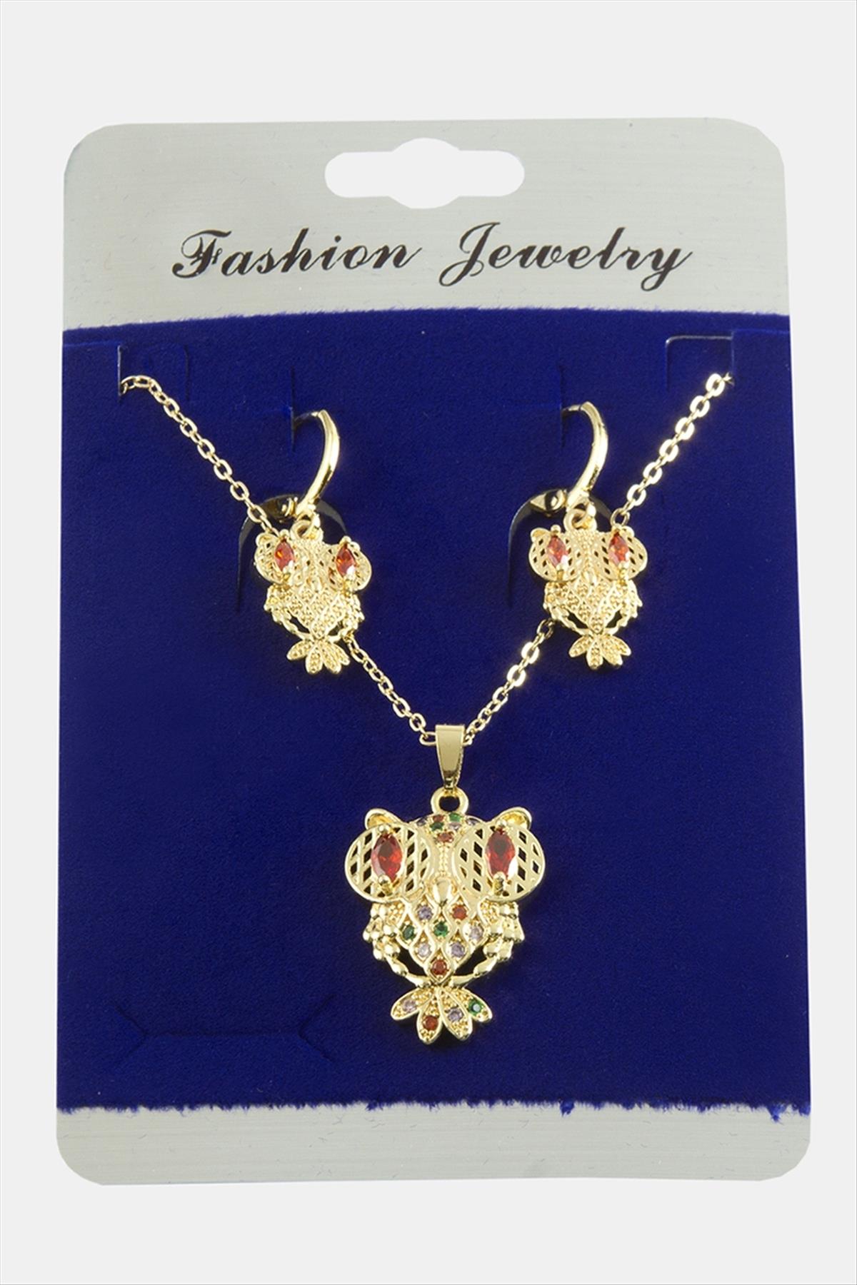 Baykuş Zirkon Taşlı Set Kolye-Renkli