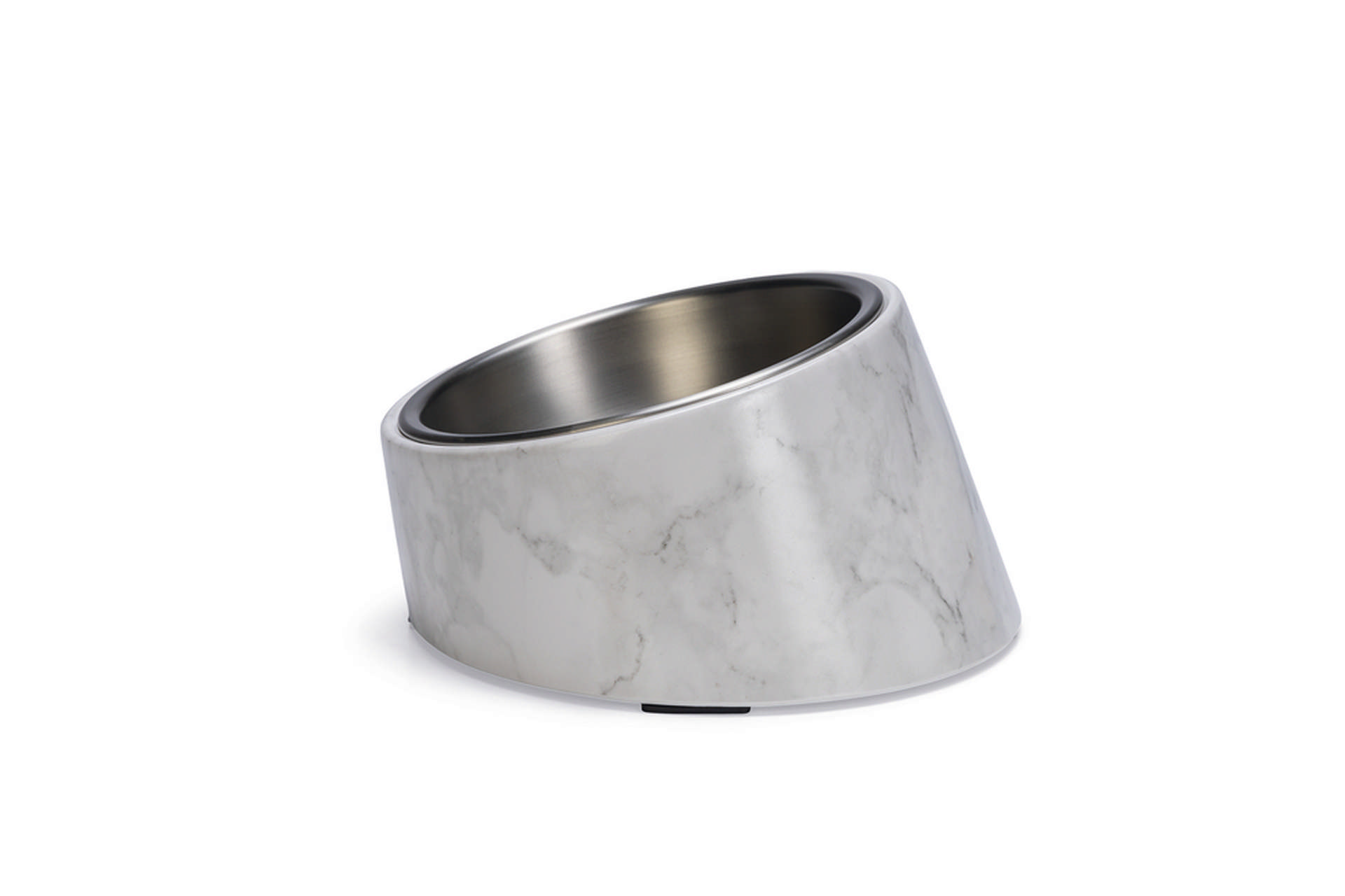 Beeztees DBL Kedi Mama Su Kabı, Paslanmaz Çelik, Beyaz Mermer Görünümlü, 14,5×3,3×7,6cm, 160ml