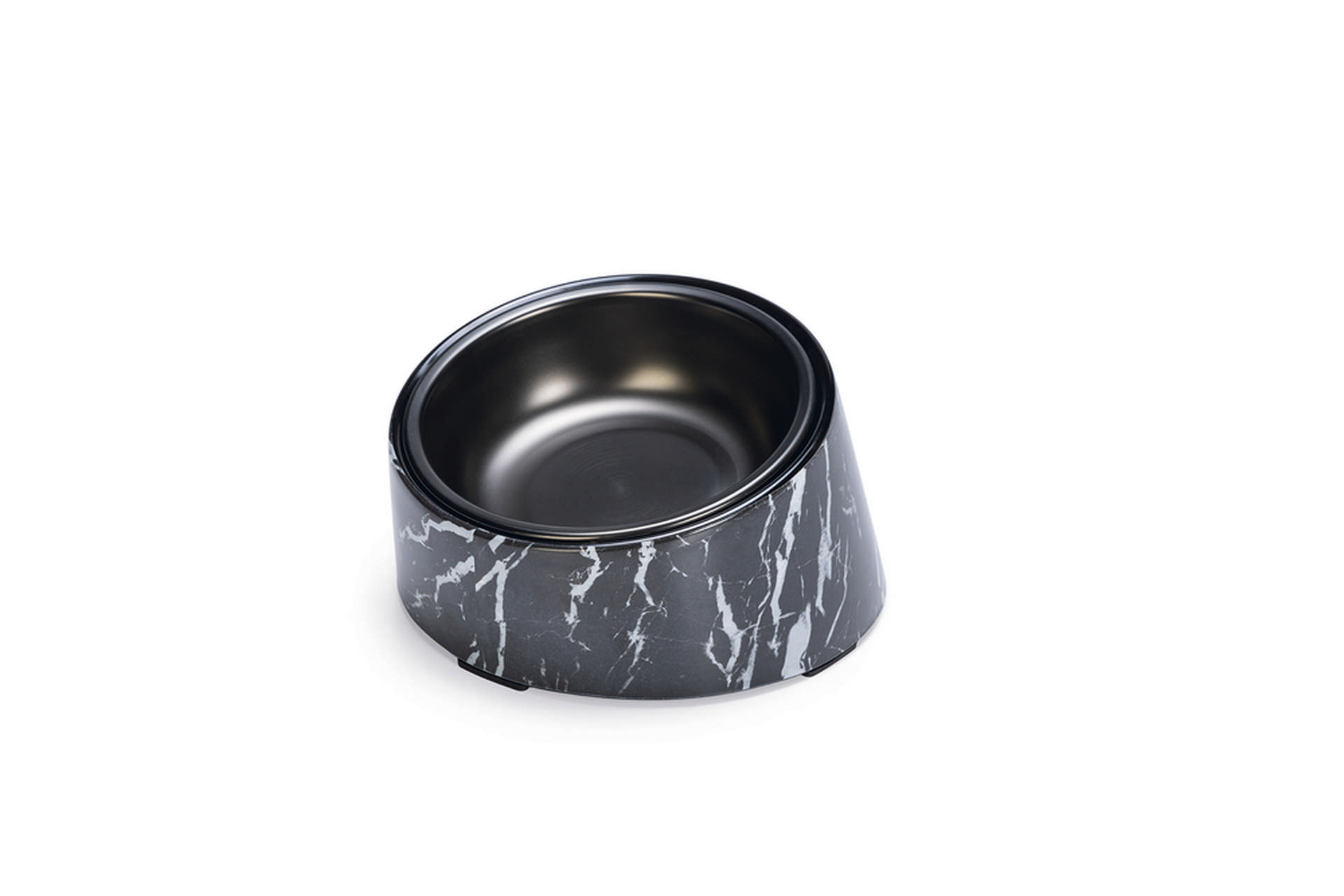 Beeztees DBL Kedi Mama Su Kabı, Paslanmaz Çelik, Siyah Mermer Görünümlü, 14,5×3,3×7,6cm, 160ml