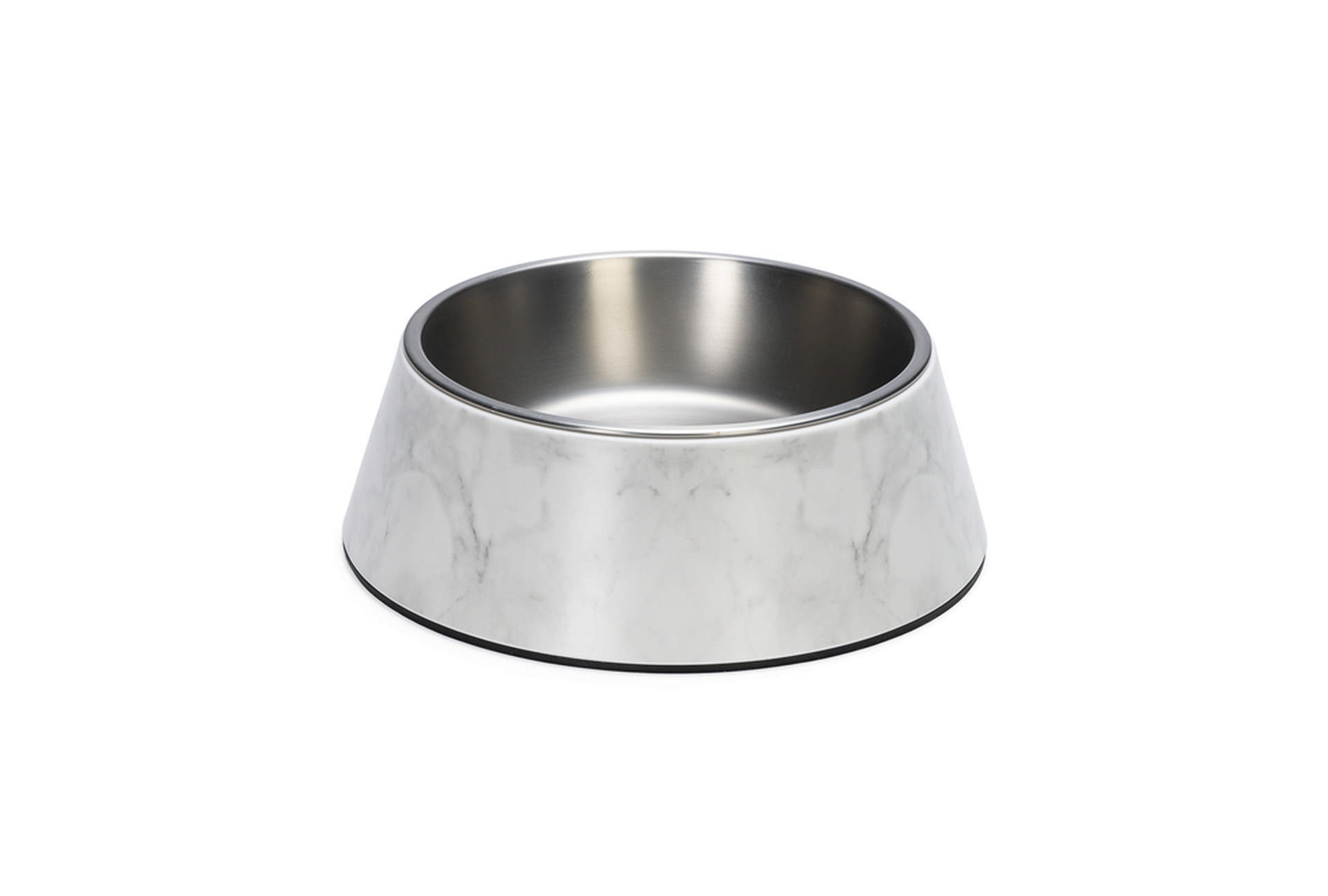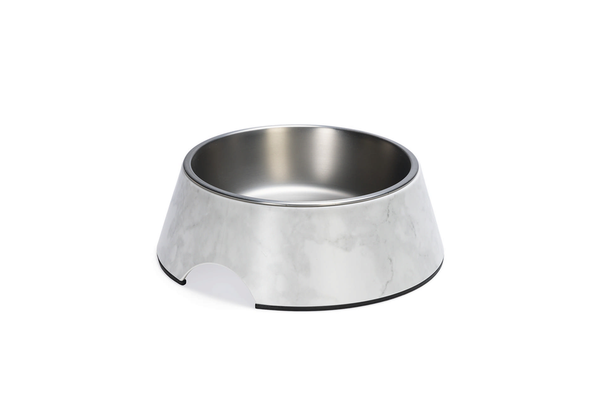 Beeztees DBL Köpek Mama Su Kabı, Mat Paslanmaz Çelik, Beyaz Mermer Görünümlü, 22cm, 700ml