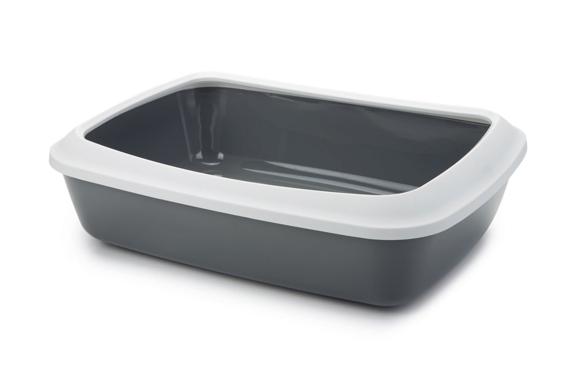Beeztees Kalın Kenarlı Açık Kedi Tuvaleti, Gri, 50x37x14cm