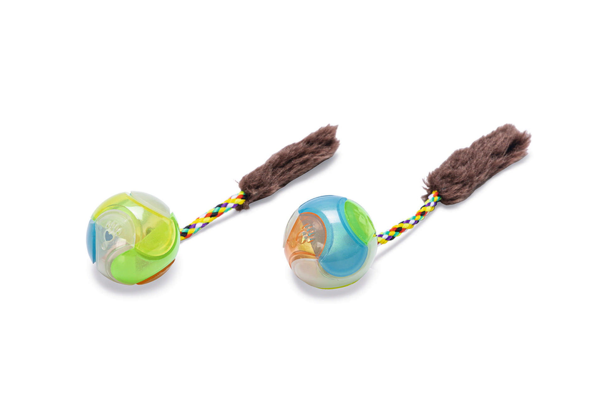 Beeztees Kedi Oyuncağı, Kuyruklu Top, 2 Adet, Çeşitli Renklerde, 18×4,5×4,5cm