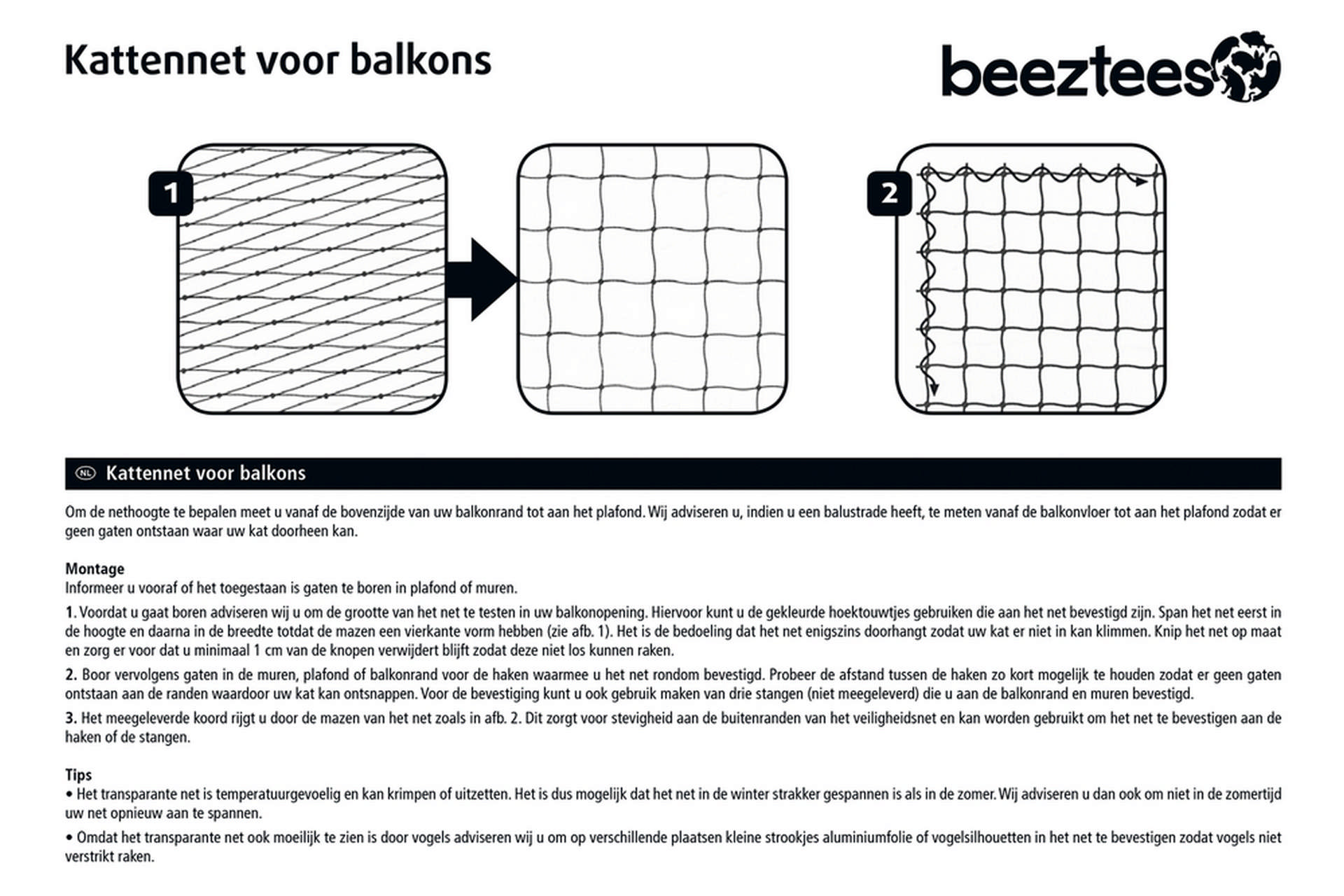 Beeztees Balkon Kedi Ağı adından da anlaşılacağı gibi tam olarak beklenen işlevi görür. Evcil hayvanınızın balkondan düşmesini önler. Bu ağ yerine sabitlemek çok kolaydır ve şeffaftır. Bu, onu neredeyse göze çarpmaz kılar ve kedinizi balkonda yalnız bırakabilirsiniz, bir daha asla endişelenmenize gerek kalmaz. – Bağlama ipi ve kancalar içerir – Gözenek boyutu: 3 x 3 cm – 3 farklı boyutta mevcuttur Boyutlar: – 4 x 3 metre – 6 x 3 metre – 8 x 3 metre
