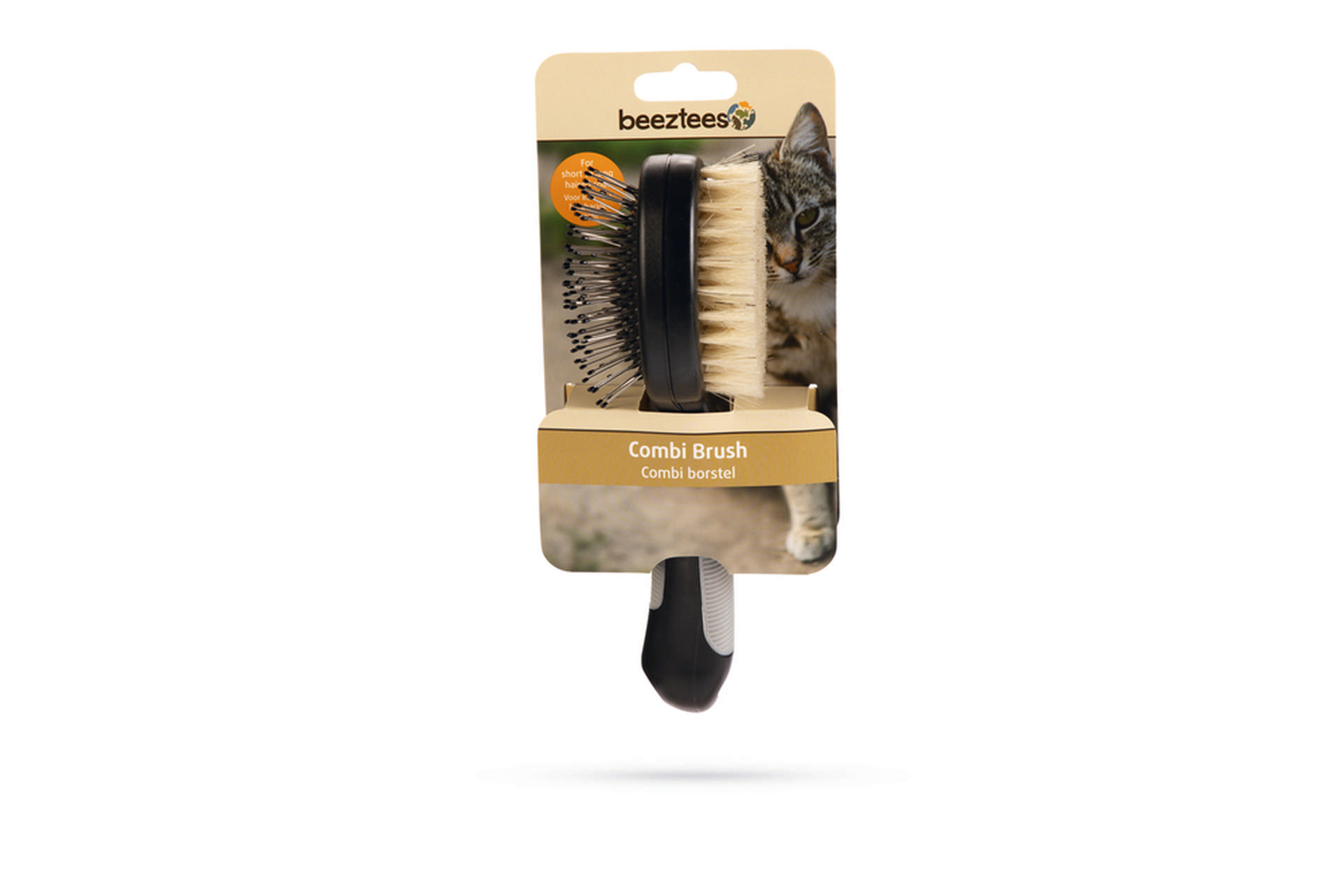 Beeztees Kısa ve Uzun Tüylü Kedi Çift Fırçası ve Tarağı, Çift Taraflı, Siyah Gri, 21cm