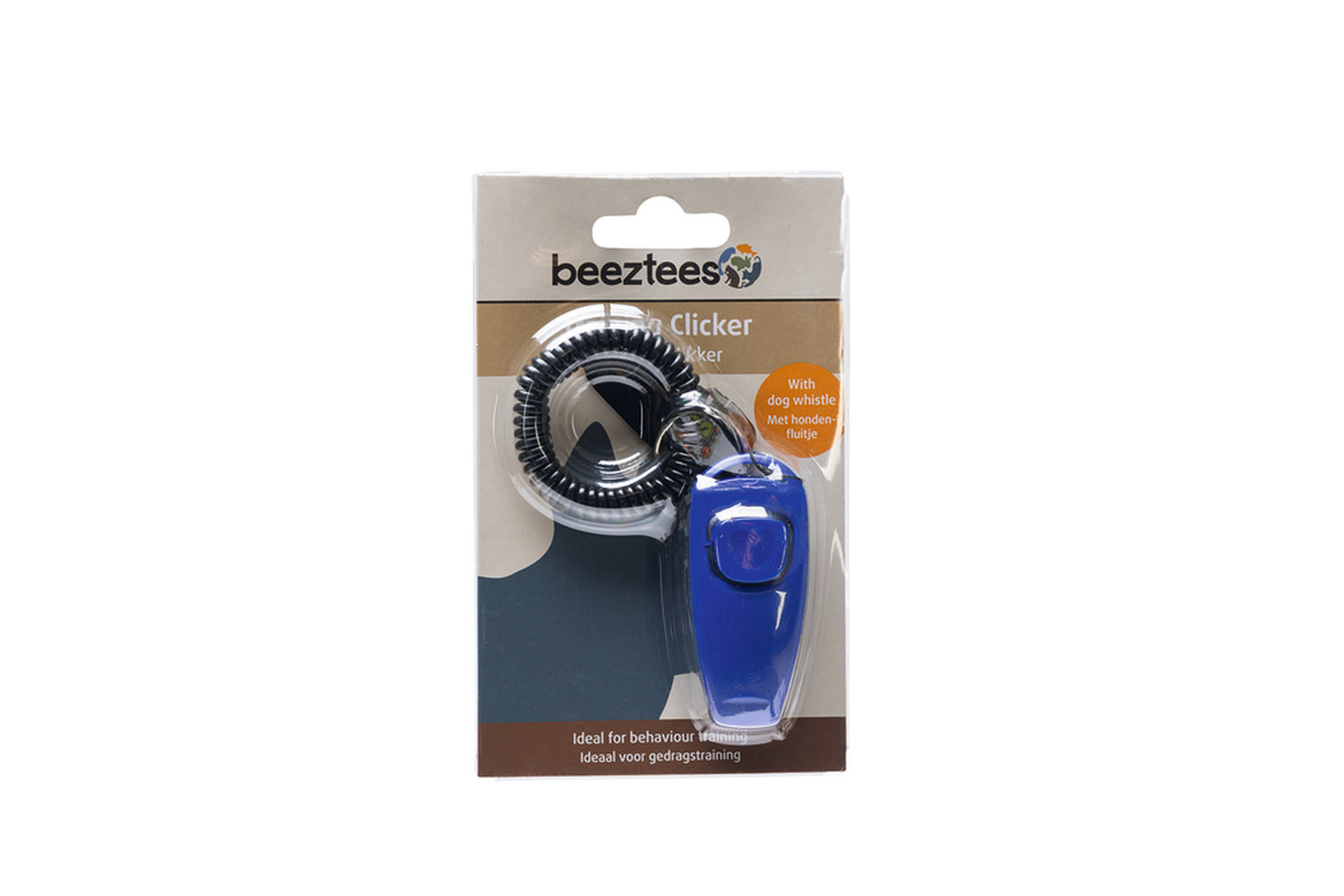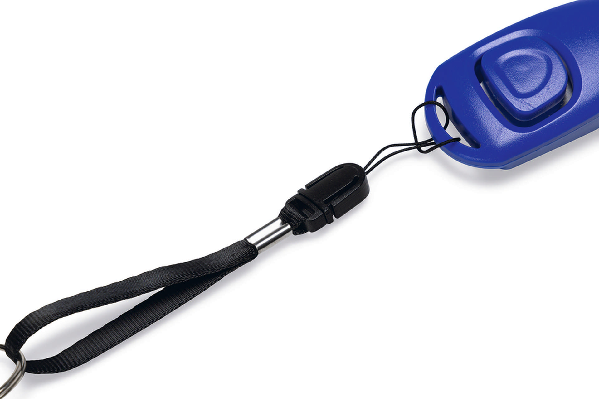 Beeztees Köpek Eğitim Düdüğü ve Klikırı, Karabina ve Bağlama Kordonlu, Mavi, 7x3x2cm