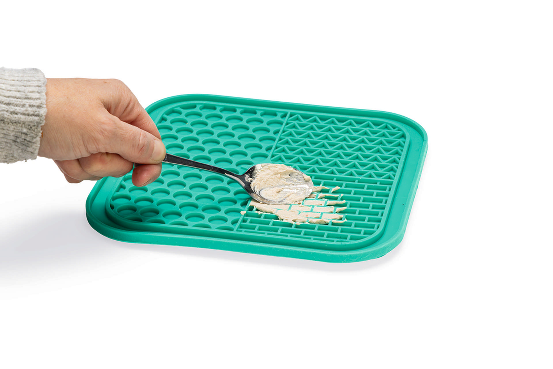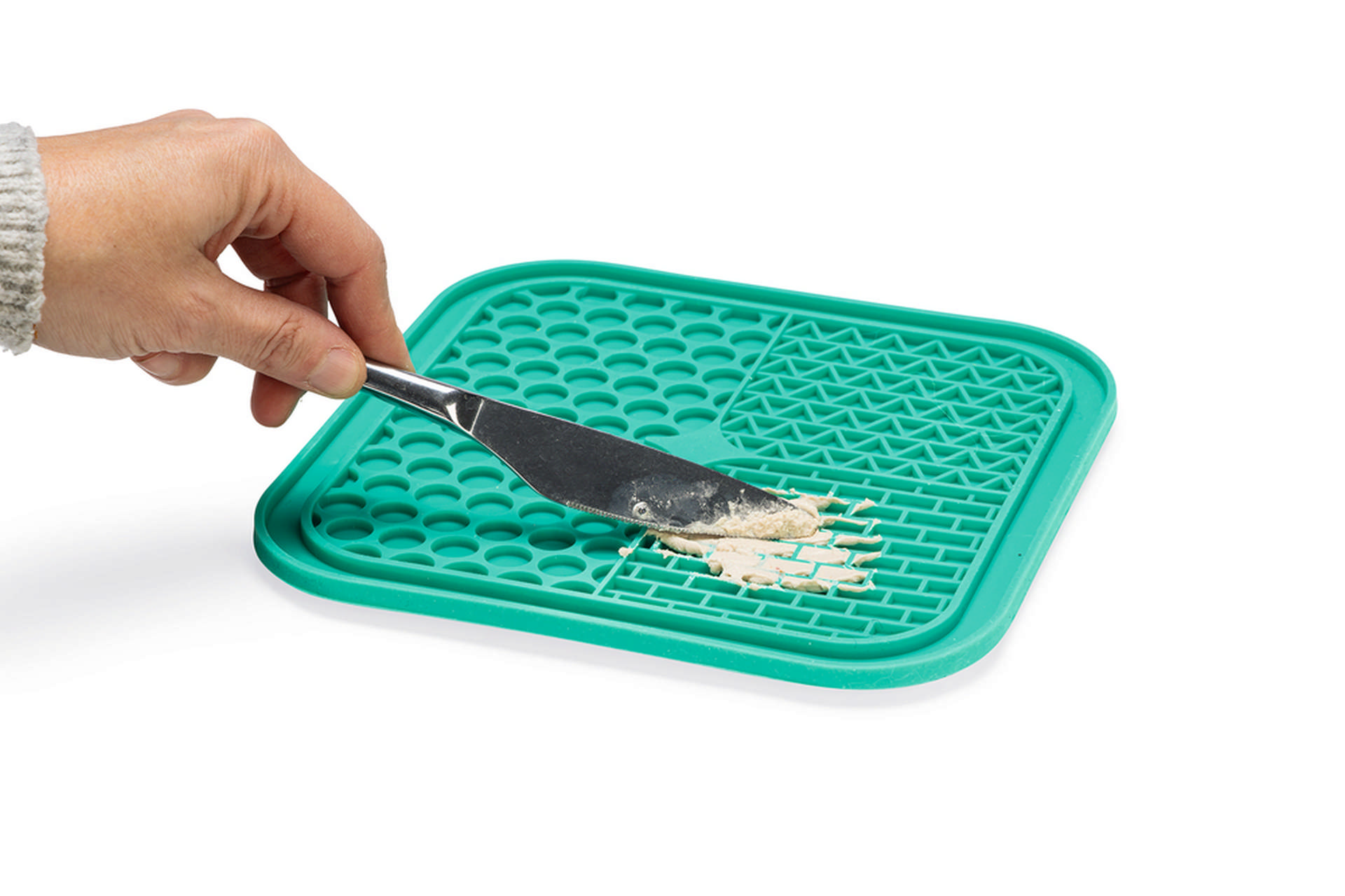 Beeztees Lick Mat Connoisseur ile köpeğiniz için lezzetli bir yemek hazırlayabilirsiniz. Üç farklı desene sahip bu yalama matı, sadece eğlenceli bir aktivite sunmakla kalmaz, aynı zamanda köpeğinizin atıştırmalığını daha uzun süre keyifle yemesini sağlar. Yalama matı, yiyeceklerin matın oyuklarına yerleşmesi sayesinde köpeğinizin yemeğini hızlıca yemesini önler. Matı yalamak köpeğinize rahatlama sağlar ve yalama matının dokusu köpeğinizin dilini de temizler. Yalama matı silikondan yapılmıştır ve kaymayı önlemek için altında vantuzlar bulunur. Yalama matını dolgu ile birlikte dondurun ve köpeğinize sıcak yaz günlerinde lezzetli bir taze atıştırmalık verin. Yalama matı bulaşık makinesinde temizlenebilir. – Yavaş yemeyi teşvik eder ve hızlı yemeyi önler – Köpeği rahatlatır ve stresi azaltır – Oral hijyeni destekler – Silikondan yapılmıştır – Vantuzlarla – Bulaşık makinesinde güvenli – Mikrodalga fırında 600 Watt’a kadar güvenli Ölçüler: 20x20x1cm