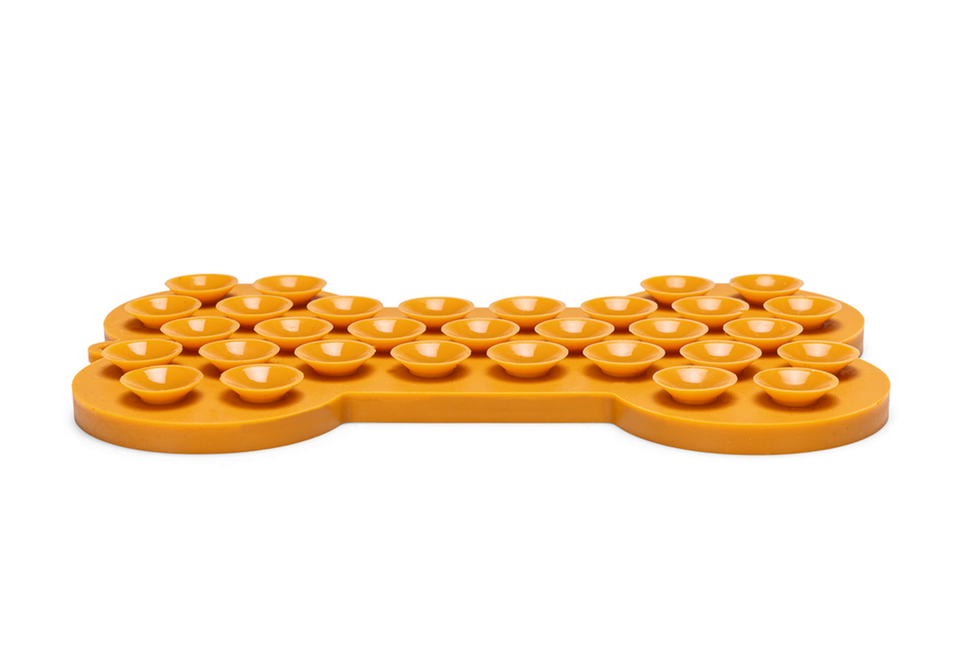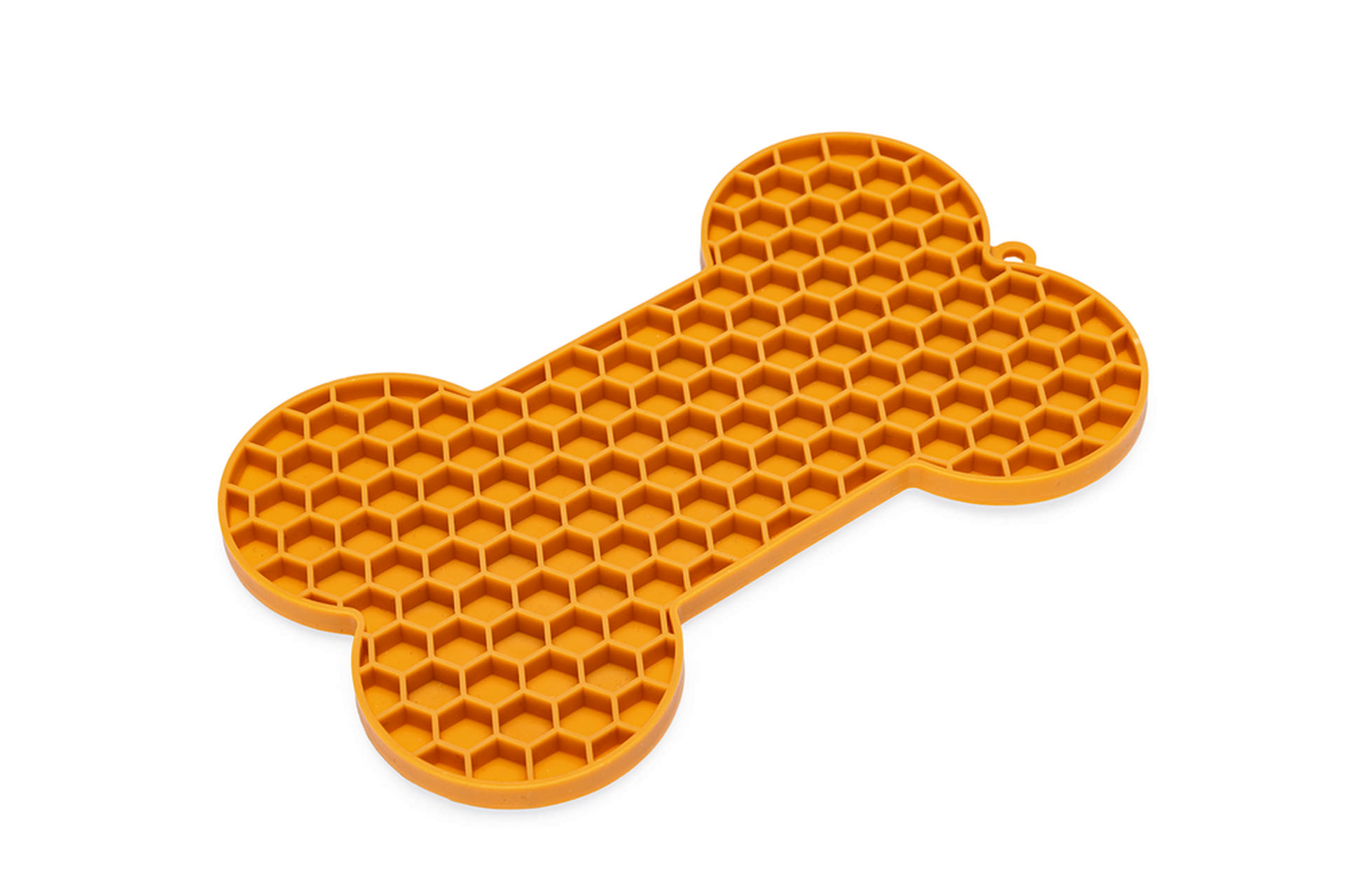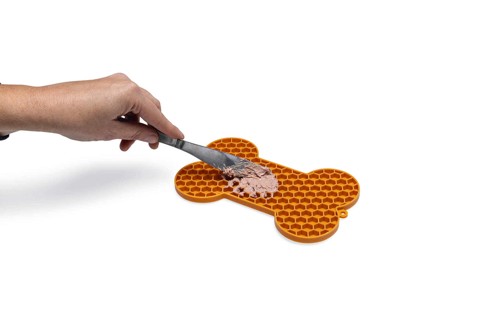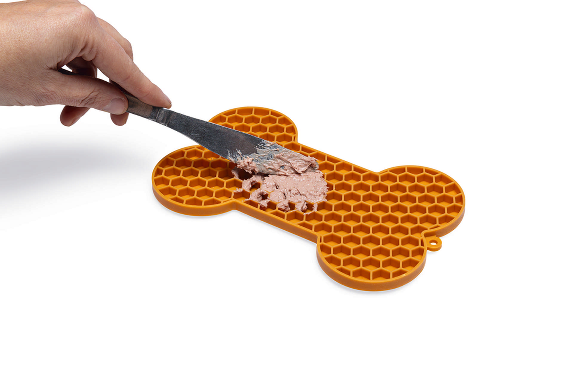 Beeztees Lick Mat Bone ile köpeğiniz için lezzetli bir yemek hazırlayabilirsiniz. Bu yalama matı sadece eğlenceli bir aktivite sağlamakla kalmaz, aynı zamanda köpeğinizin atıştırmalığını daha uzun süre keyifle yemesini de sağlar. Yalama matı, yiyeceklerin matın oyuklarına yerleşmesi sayesinde köpeğinizin yiyeceklerini hızlıca yemesini önler. Matı yalamak, köpeğinizin stresli durumlar sırasında rahatlamasını sağlar ve yalama matının dokusu köpeğinizin dilini temizler. Yalama matı silikondan yapılmıştır ve kaymayı önlemek için alt kısmında vantuzlar bulunur. Yalama matını yiyeceklerle birlikte dondurun ve köpeğinize sıcak yaz günlerinde lezzetli taze bir atıştırmalık verin. Yalama matı bulaşık makinesinde temizlenebilir. – Yavaş yemeyi teşvik eder ve hızlı yemeyi önler – Köpeği rahatlatır ve stresi azaltır – Ağız hijyenini destekler – Silikondan yapılmıştır – Vantuzlarla – Bulaşık makinesinde güvenli – Mikrodalga fırında 600 Watt’a kadar güvenli Ölçüler: 18x11x1cm