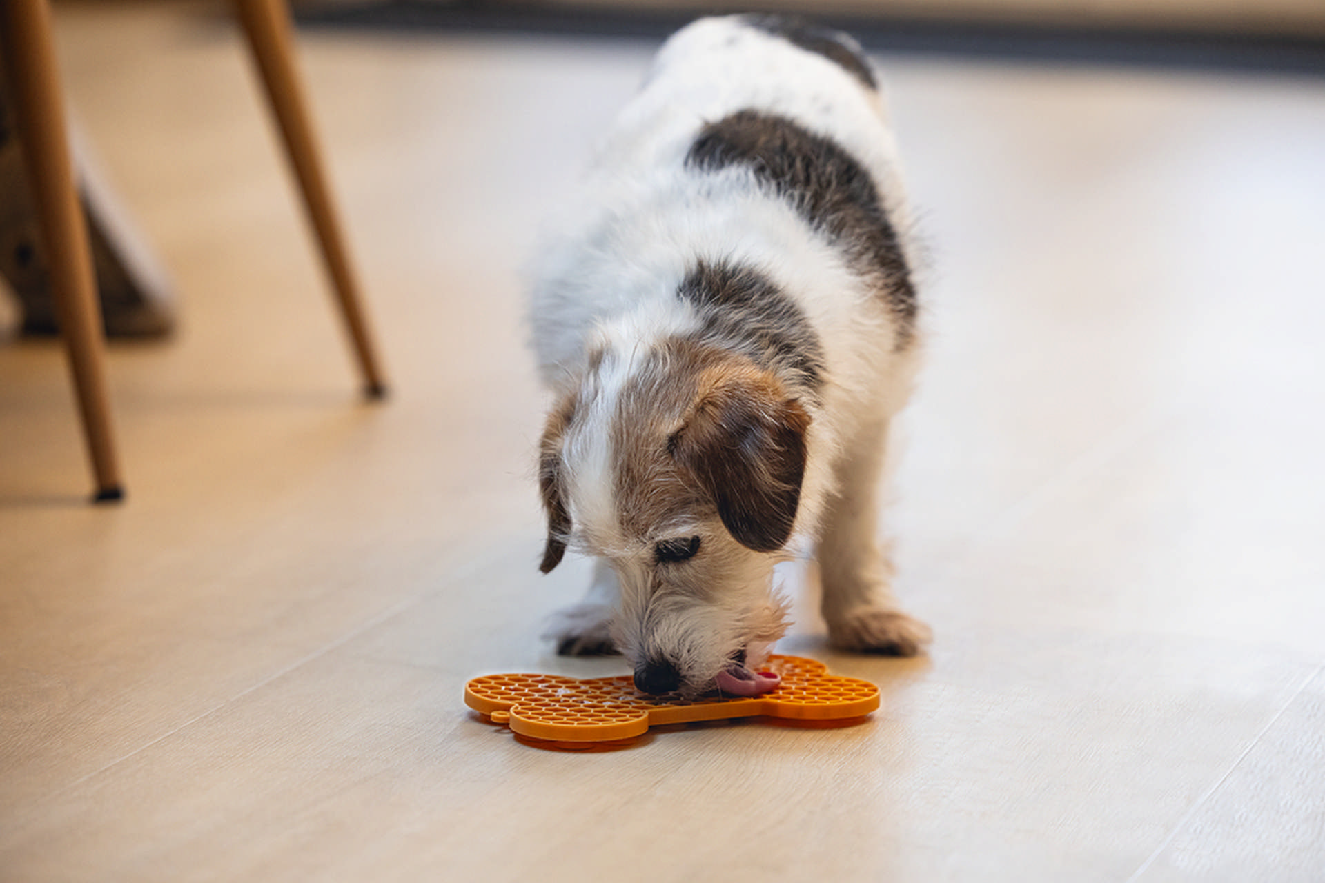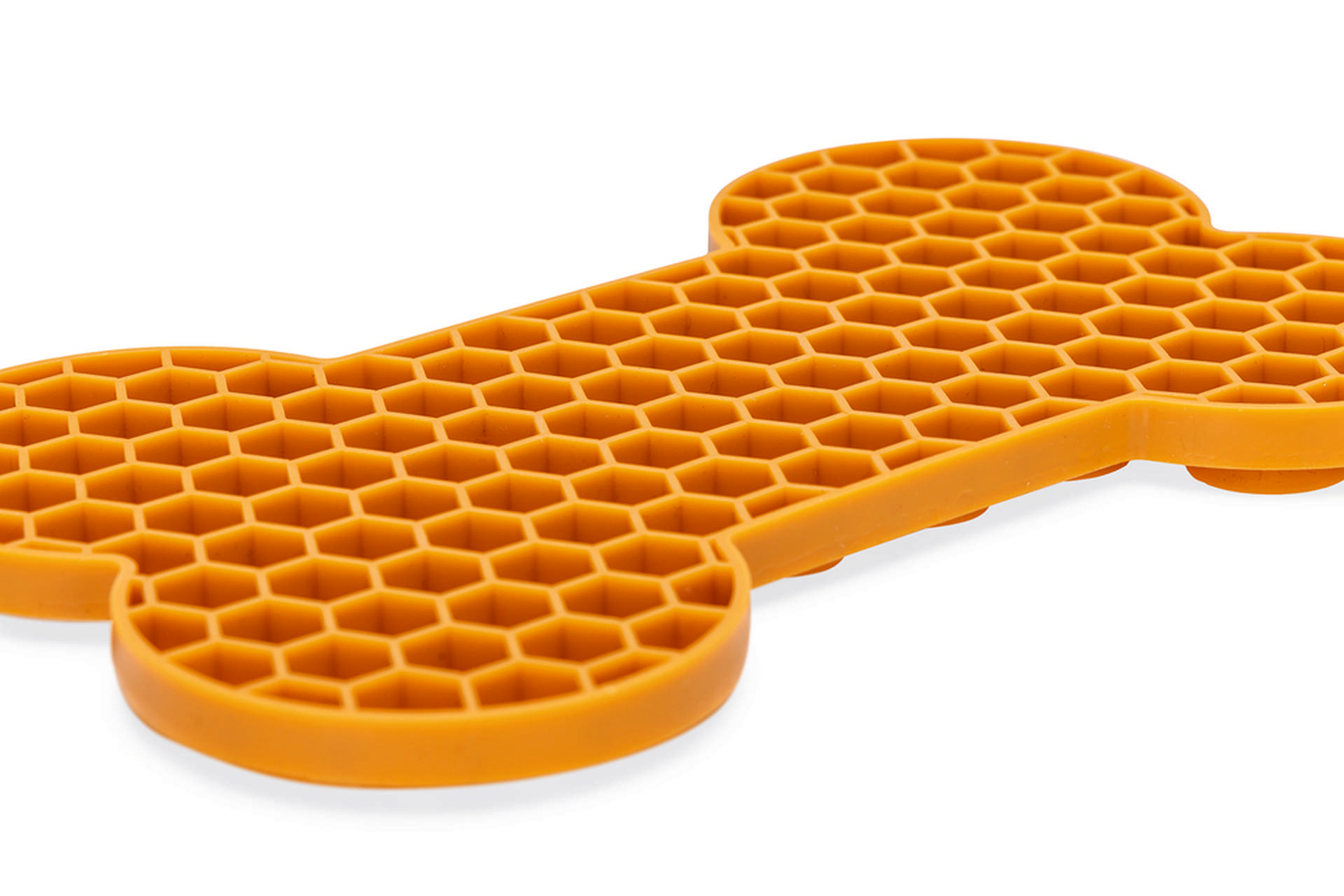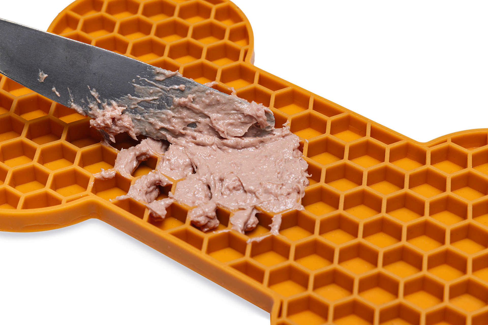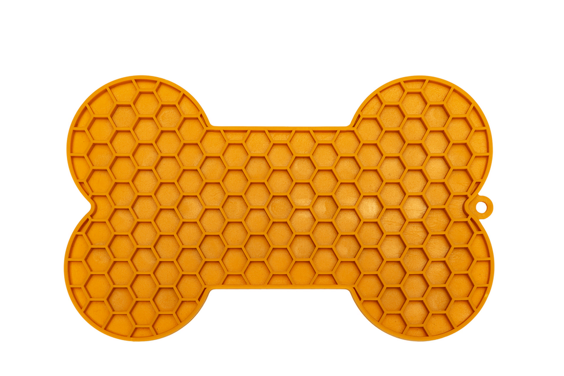 Beeztees Lick Mat Bone ile köpeğiniz için lezzetli bir yemek hazırlayabilirsiniz. Bu yalama matı sadece eğlenceli bir aktivite sağlamakla kalmaz, aynı zamanda köpeğinizin atıştırmalığını daha uzun süre keyifle yemesini de sağlar. Yalama matı, yiyeceklerin matın oyuklarına yerleşmesi sayesinde köpeğinizin yiyeceklerini hızlıca yemesini önler. Matı yalamak, köpeğinizin stresli durumlar sırasında rahatlamasını sağlar ve yalama matının dokusu köpeğinizin dilini temizler. Yalama matı silikondan yapılmıştır ve kaymayı önlemek için alt kısmında vantuzlar bulunur. Yalama matını yiyeceklerle birlikte dondurun ve köpeğinize sıcak yaz günlerinde lezzetli taze bir atıştırmalık verin. Yalama matı bulaşık makinesinde temizlenebilir. – Yavaş yemeyi teşvik eder ve hızlı yemeyi önler – Köpeği rahatlatır ve stresi azaltır – Ağız hijyenini destekler – Silikondan yapılmıştır – Vantuzlarla – Bulaşık makinesinde güvenli – Mikrodalga fırında 600 Watt’a kadar güvenli Ölçüler: 18x11x1cm