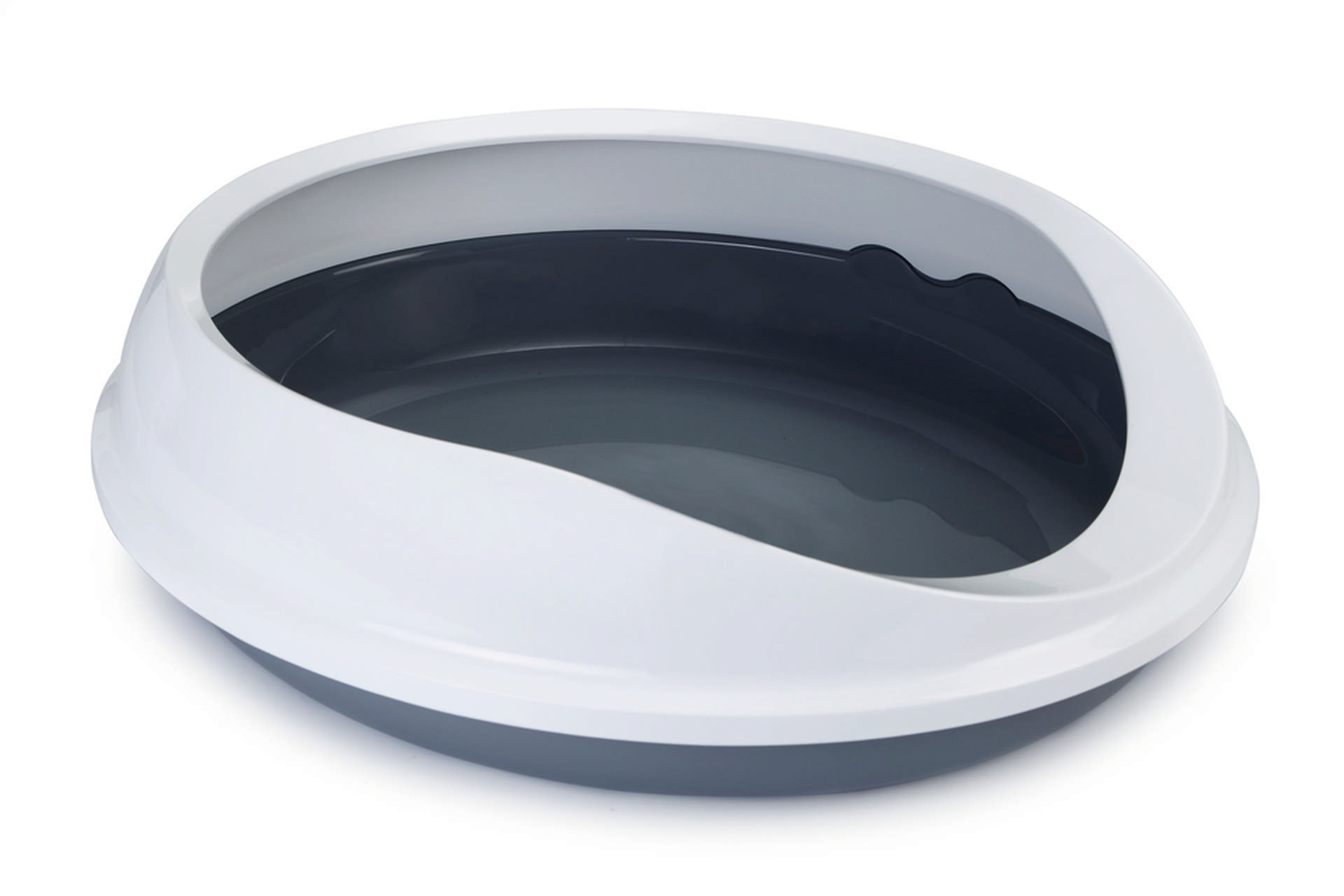 Beeztees Yüksek Kenarlı, Oval Açık Kedi Tuvaleti, Gri Beyaz, 46x55x40cm