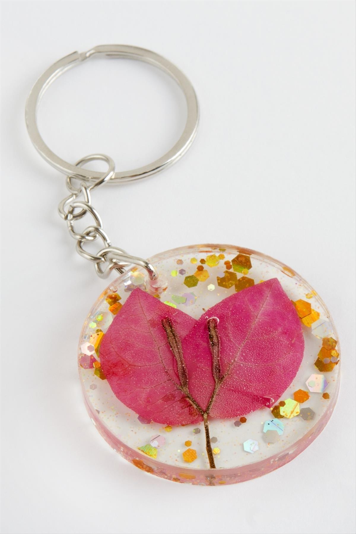 Begonvil Çiçeği Epoksi Anahtarlık-Pembe
