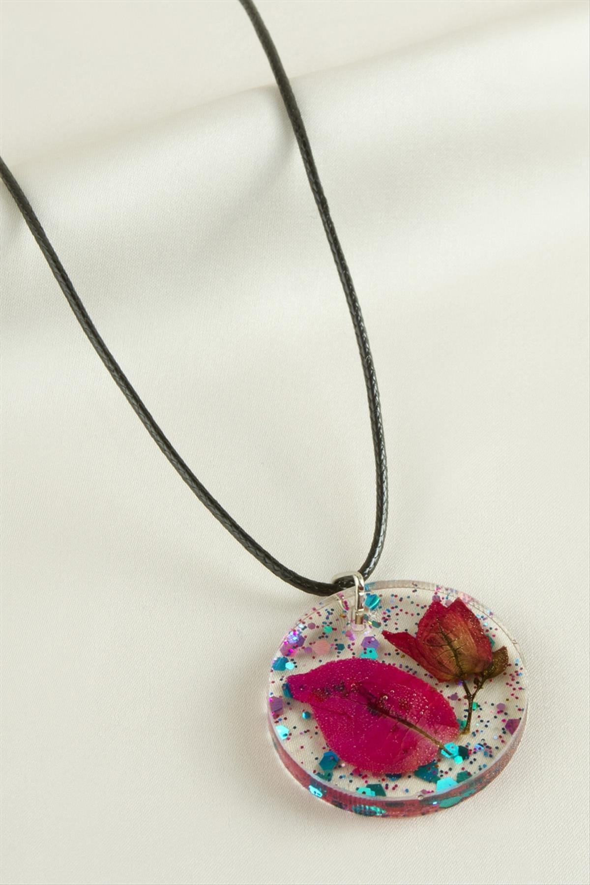 Begonvil Çiçeği Epoksi Kolye-Pembe