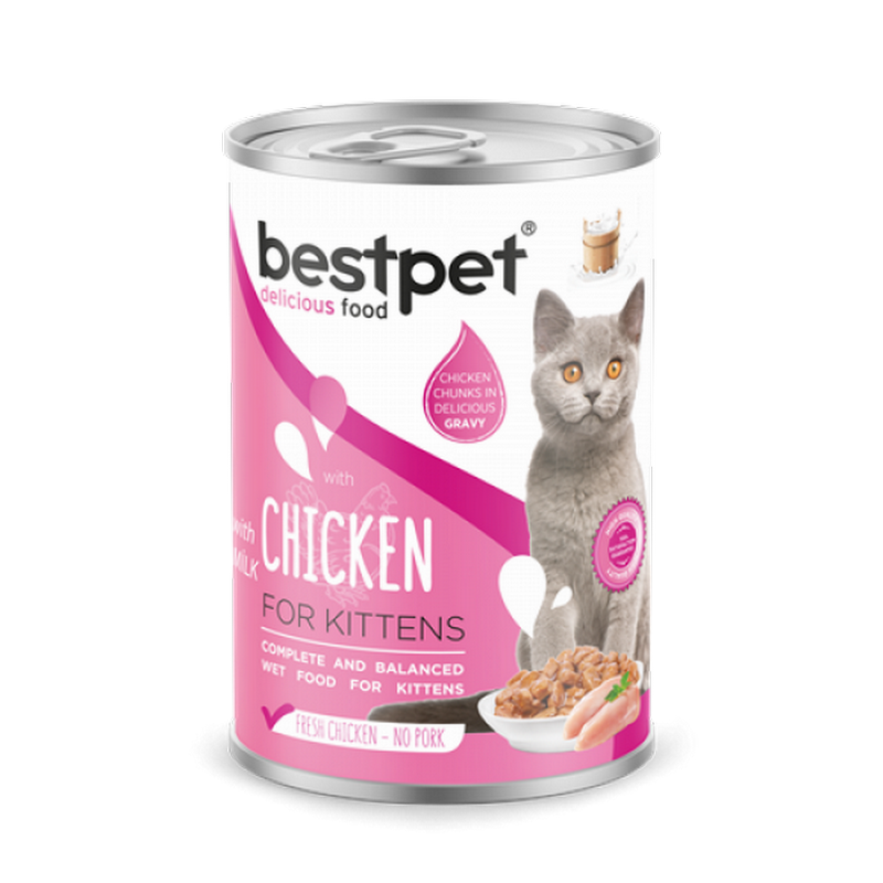 Bestpet Yavru Kediler İçin, Taze Tavuk Parça Etli Ve Sütlü Yaş Mama 400 gr