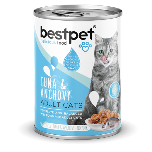 Bestpet Yetişkin Kediler İçin, Taze Tuna Balıklı, Taze Hamsi Parça Etli Ve Soslu Yaş Mama 400 gr