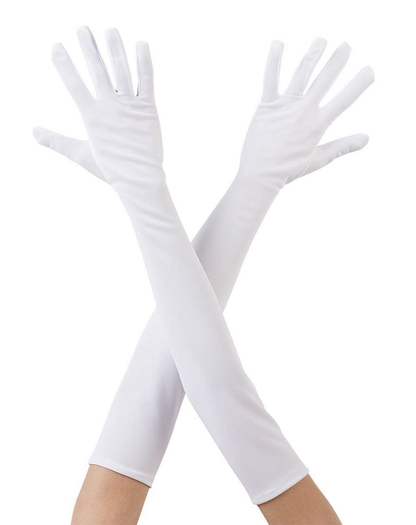 Beyaz Renk Dirseğe Kadar Uzun Kumaş Eldiven 40 cm
