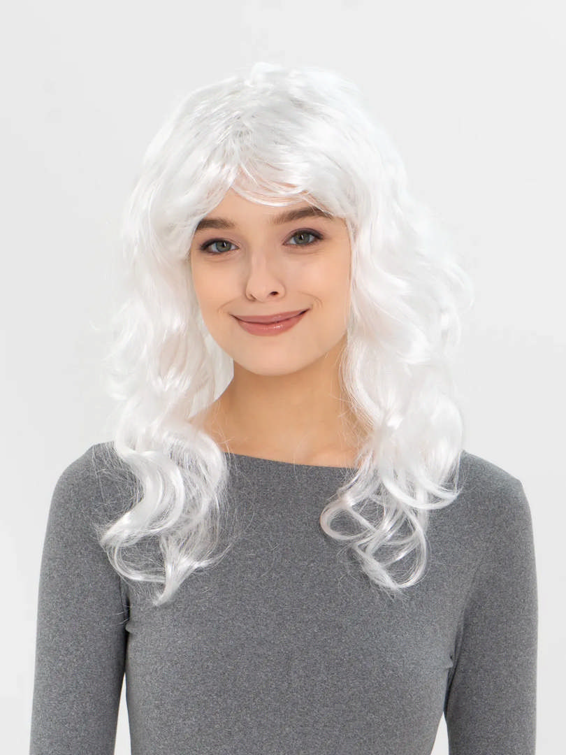 Beyaz Renk Dalgalı Uzun Parti Peruğu