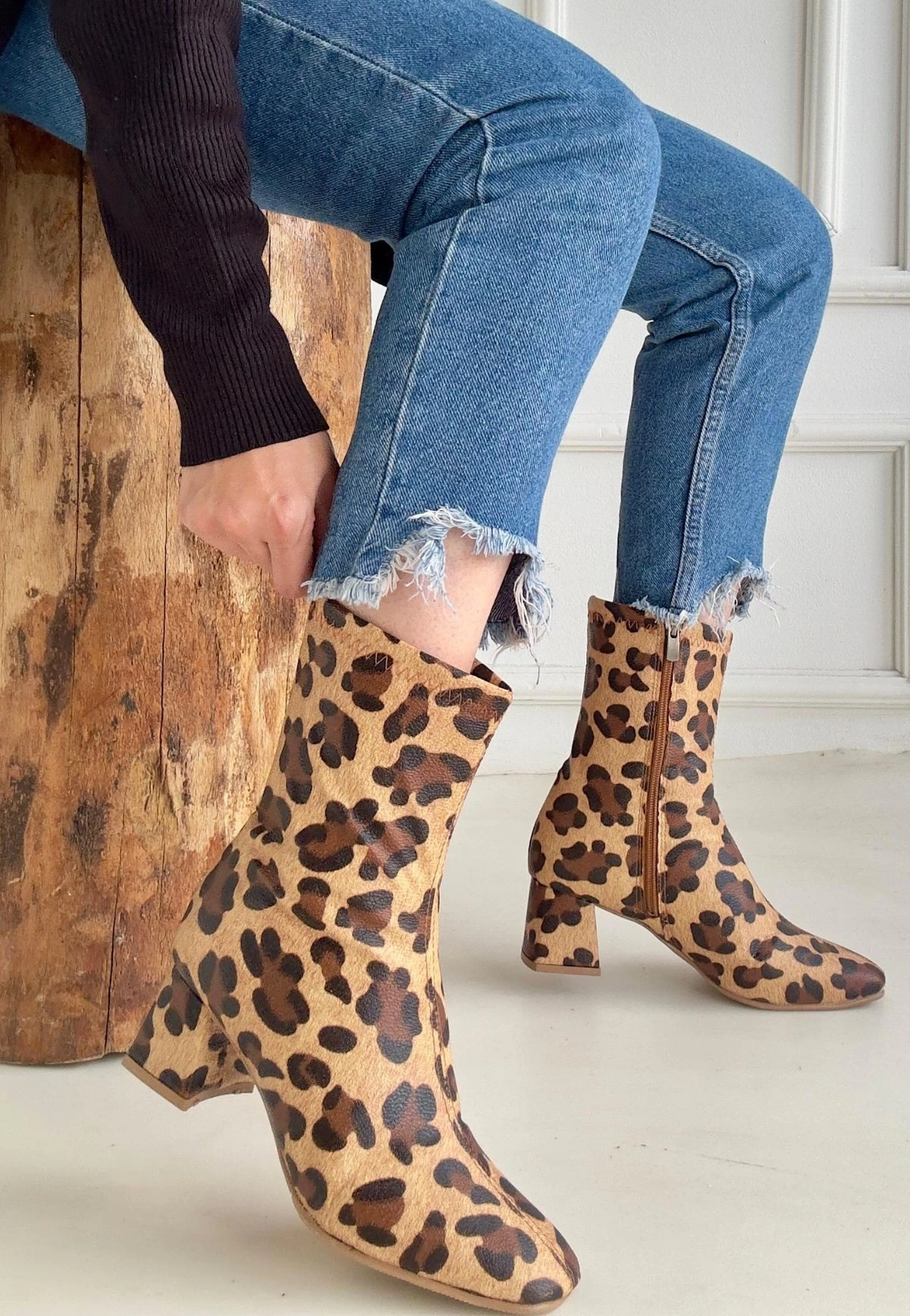 Birta Leopar Cilt Streç Topuklu Bot (Numara: 37)