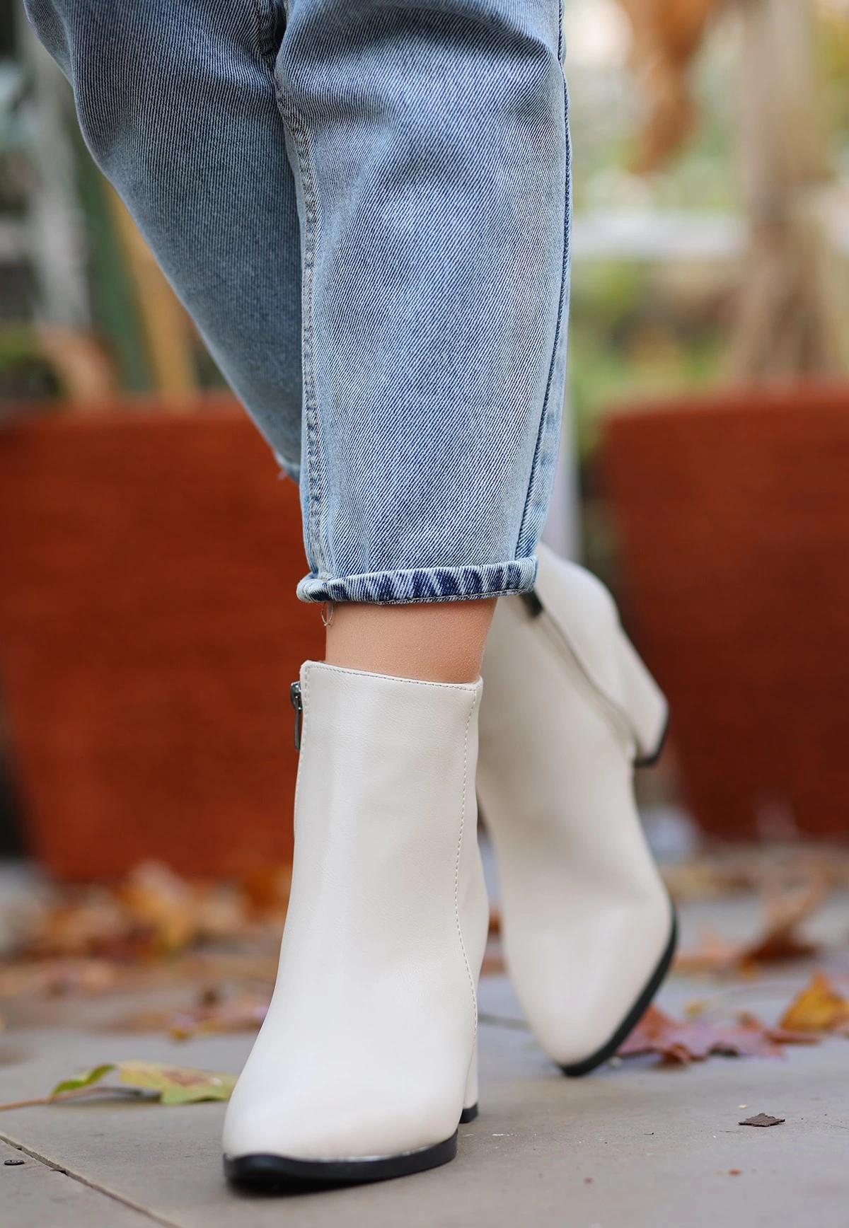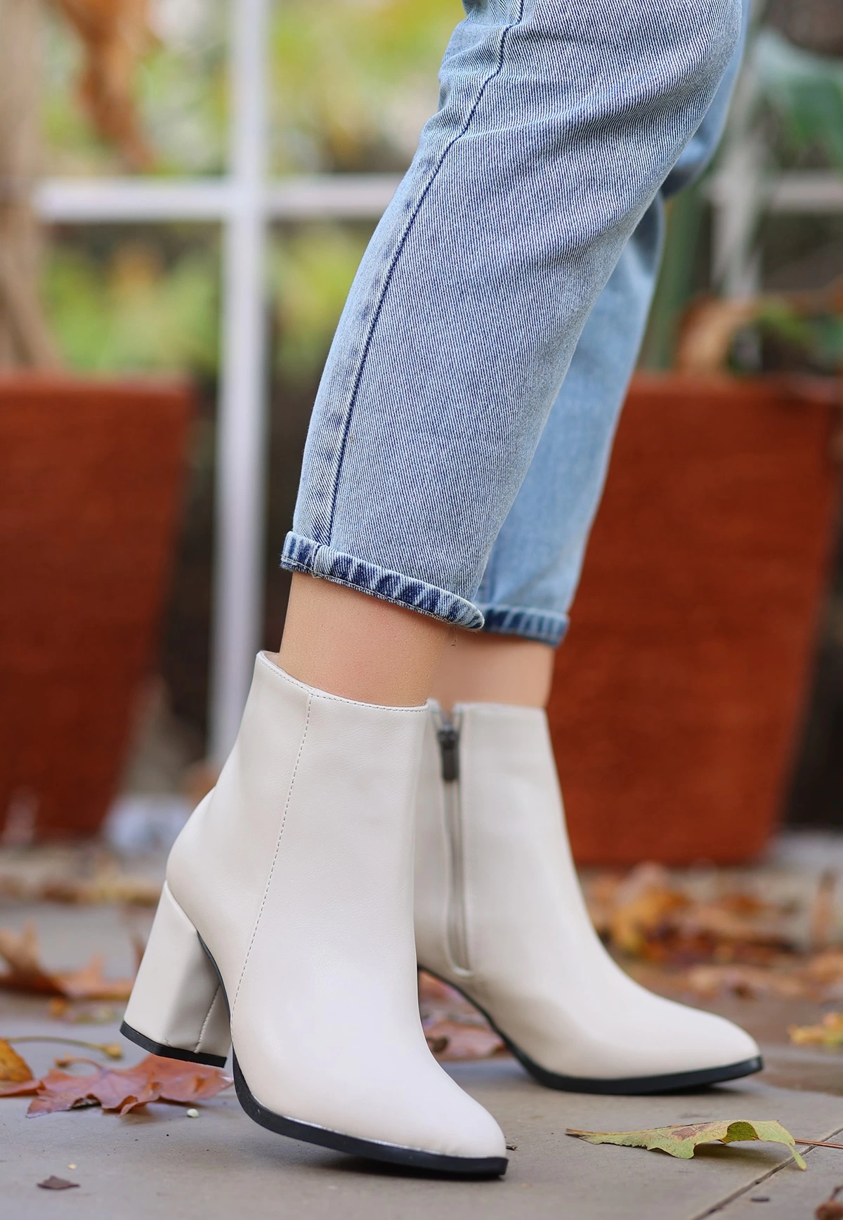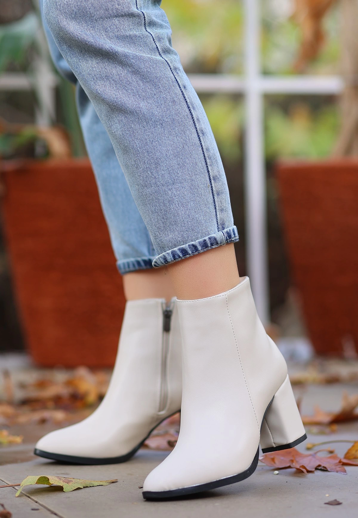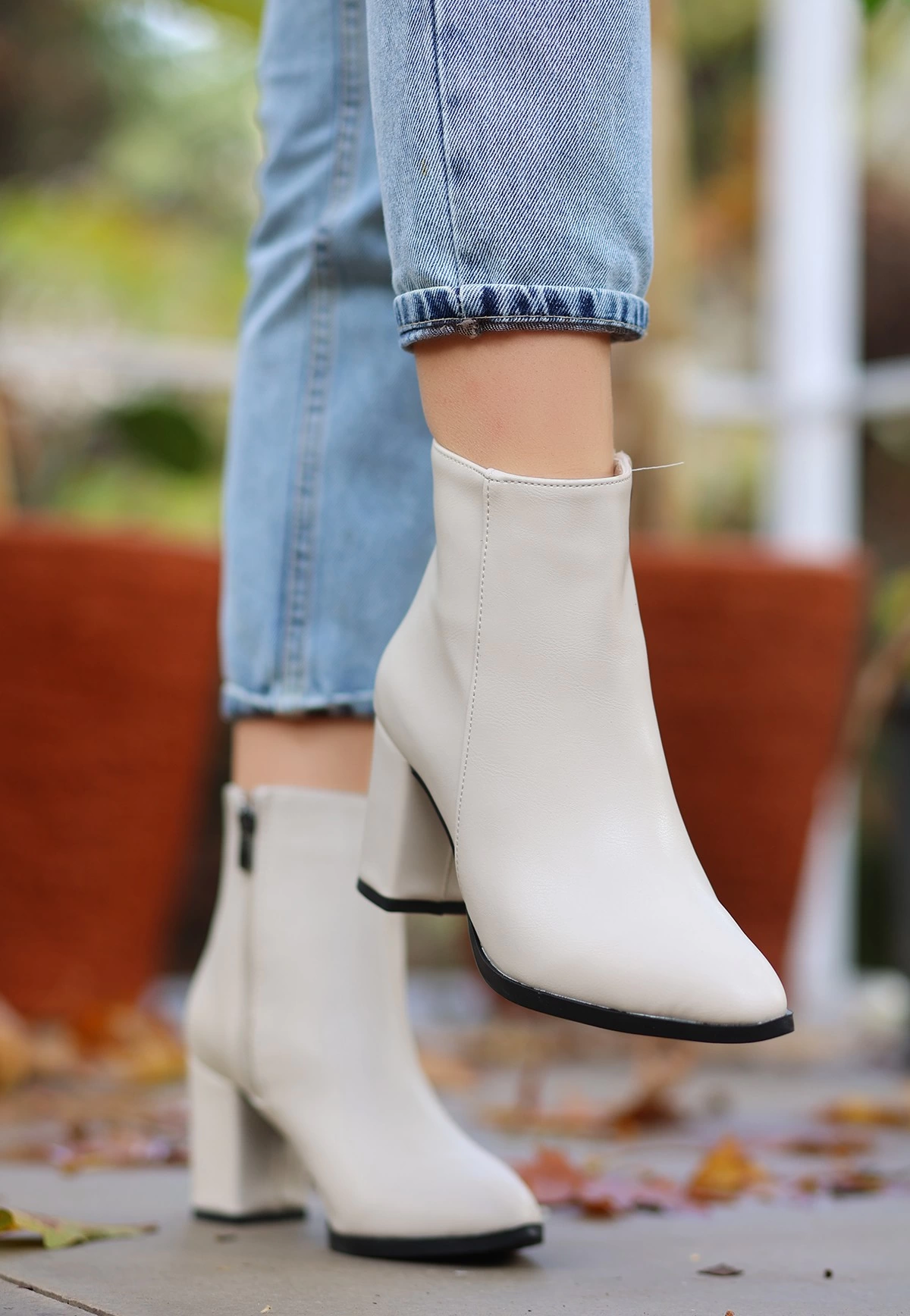 Biya Bej Cilt Topuklu Bot (Numara: 40)