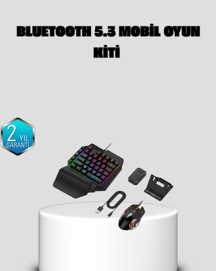 Mobil cihazlarda PC benzeri bir oyun deneyimi yaşamak isteyenler için geliştirilen 5in1 oyun kiti, performans ve ergonomiyi tek bir sette sunan çok yönlü bir çözümdür. Set içerisinde bulunan dönüştürücü, RGB mini klavye, yüksek hassasiyetli mouse, geniş yüzeyli mousepad ve güçlü telefon tutucu; oyun deneyimini tamamen farklı bir seviyeye taşır.