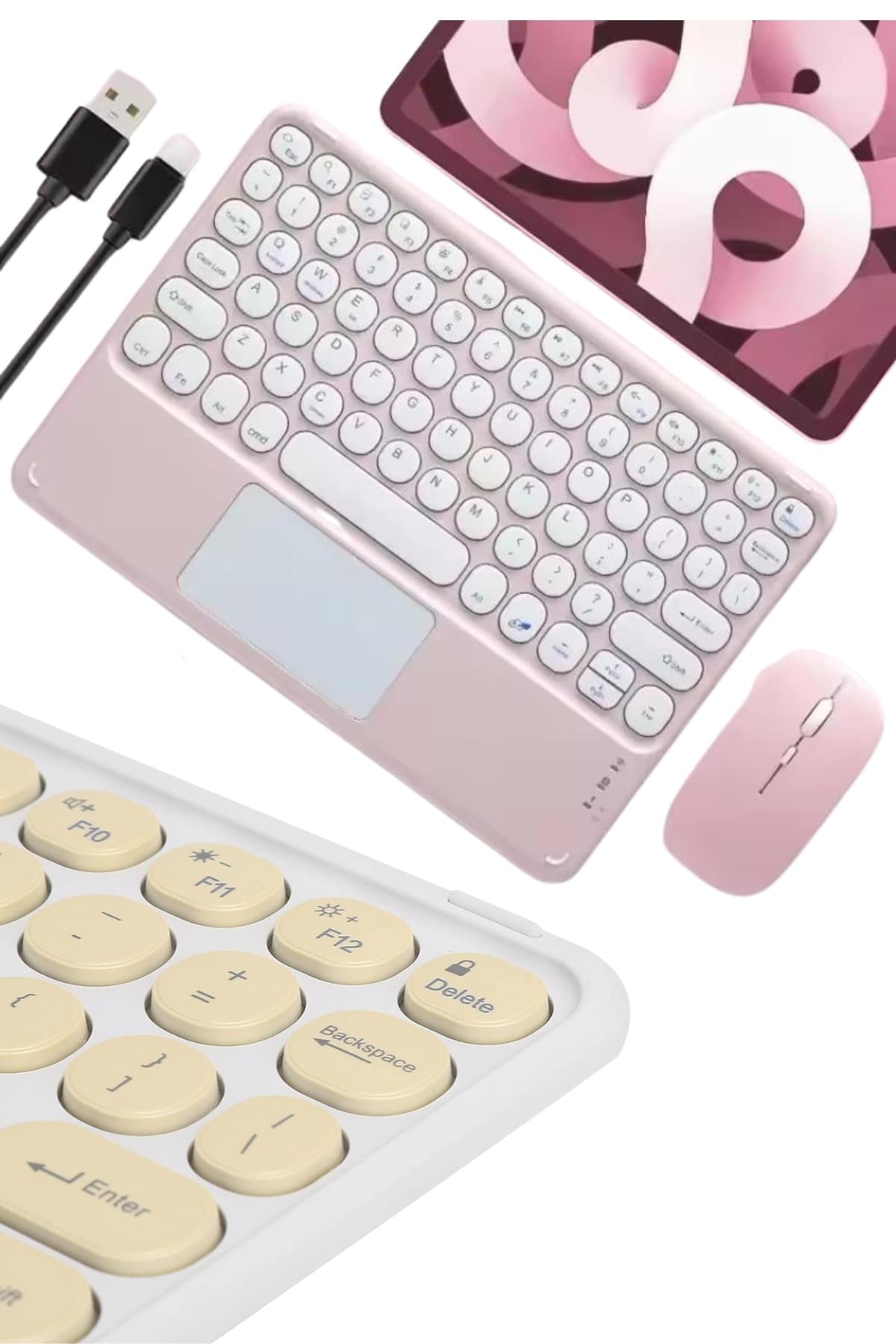 Bluetooth touchpad klavye ile tablet deneyiminizi bir üst seviyeye taşıyın. Rahat tuş yerleşimi ve hassas dokunmatik yüzeyi sayesinde, yazım hızınızı artırırken işlerinizi daha verimli bir şekilde tamamlama imkânı sunar. Hem günlük kullanım hem de profesyonel çalışmalar için ideal olan bu klavye, tabletle etkileşimi kolaylaştırarak daha konforlu bir kullanım deneyimi sağlar.