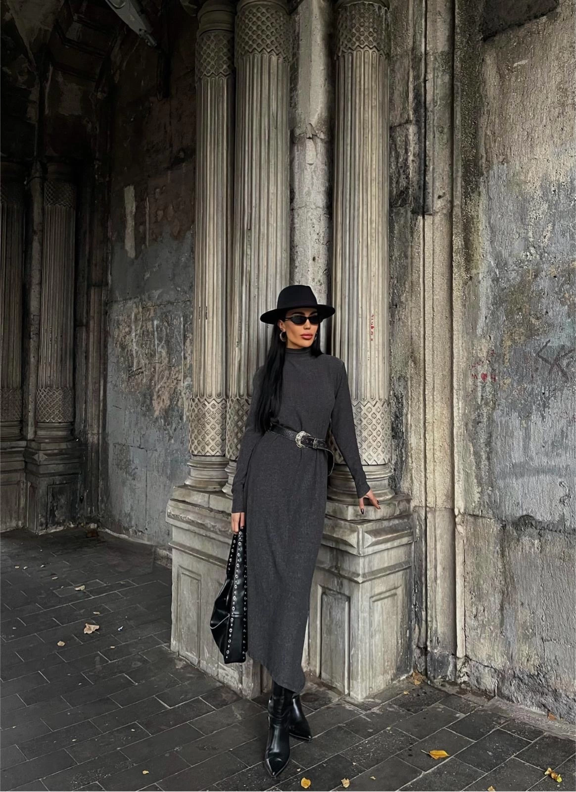 Şıklık ve rahatlığı bir arada sunan Boğazlı Kalın Bürümcük Uzun Elbise Siyah, gardırobunuzun vazgeçilmezi olmaya aday!