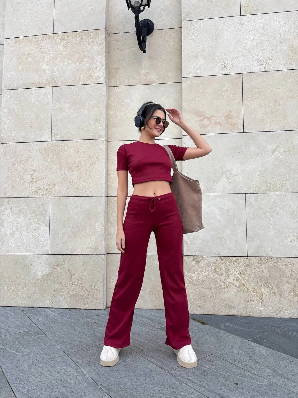 Bol paça pantolonlu alt üst takım Bordo (Beden: M)