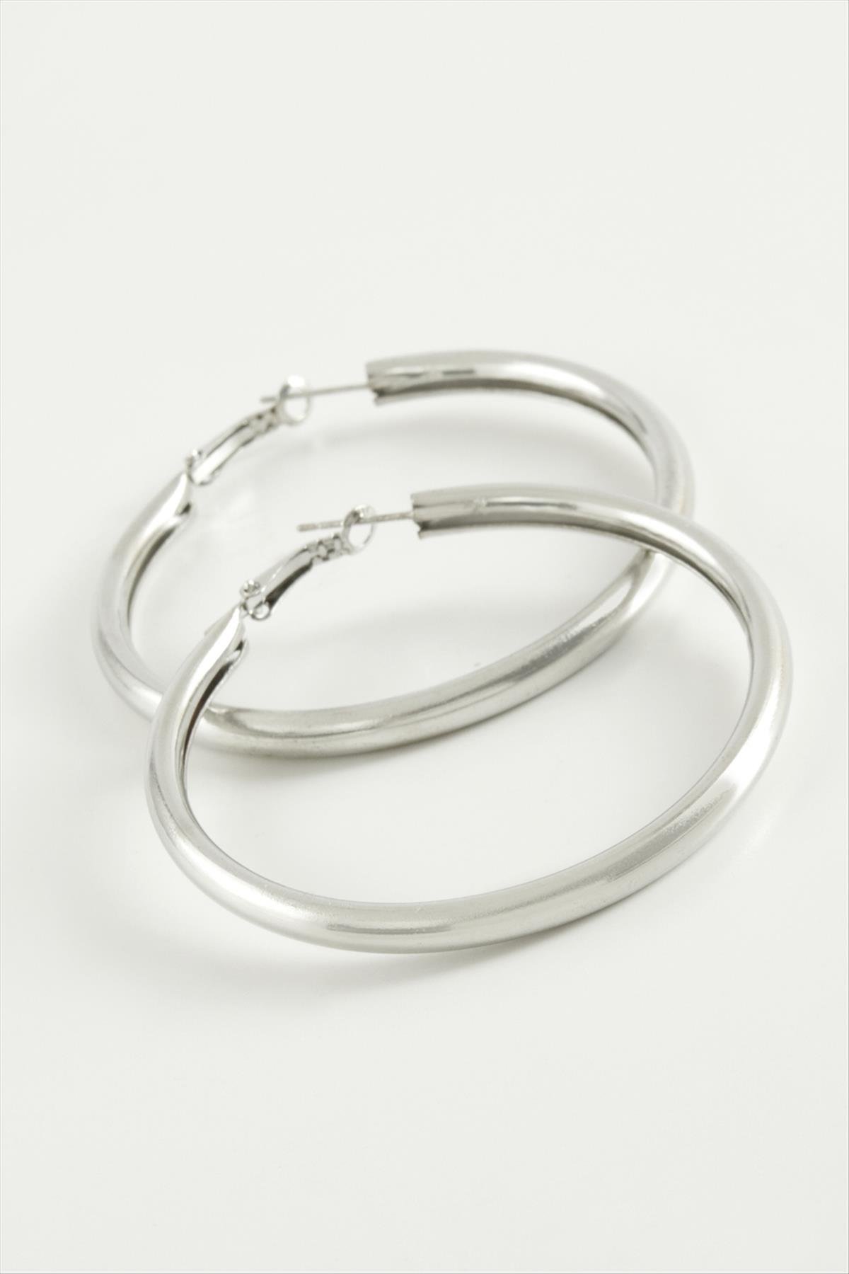 Boru Halka Küpe 3,5 cm-Gümüş Rengi