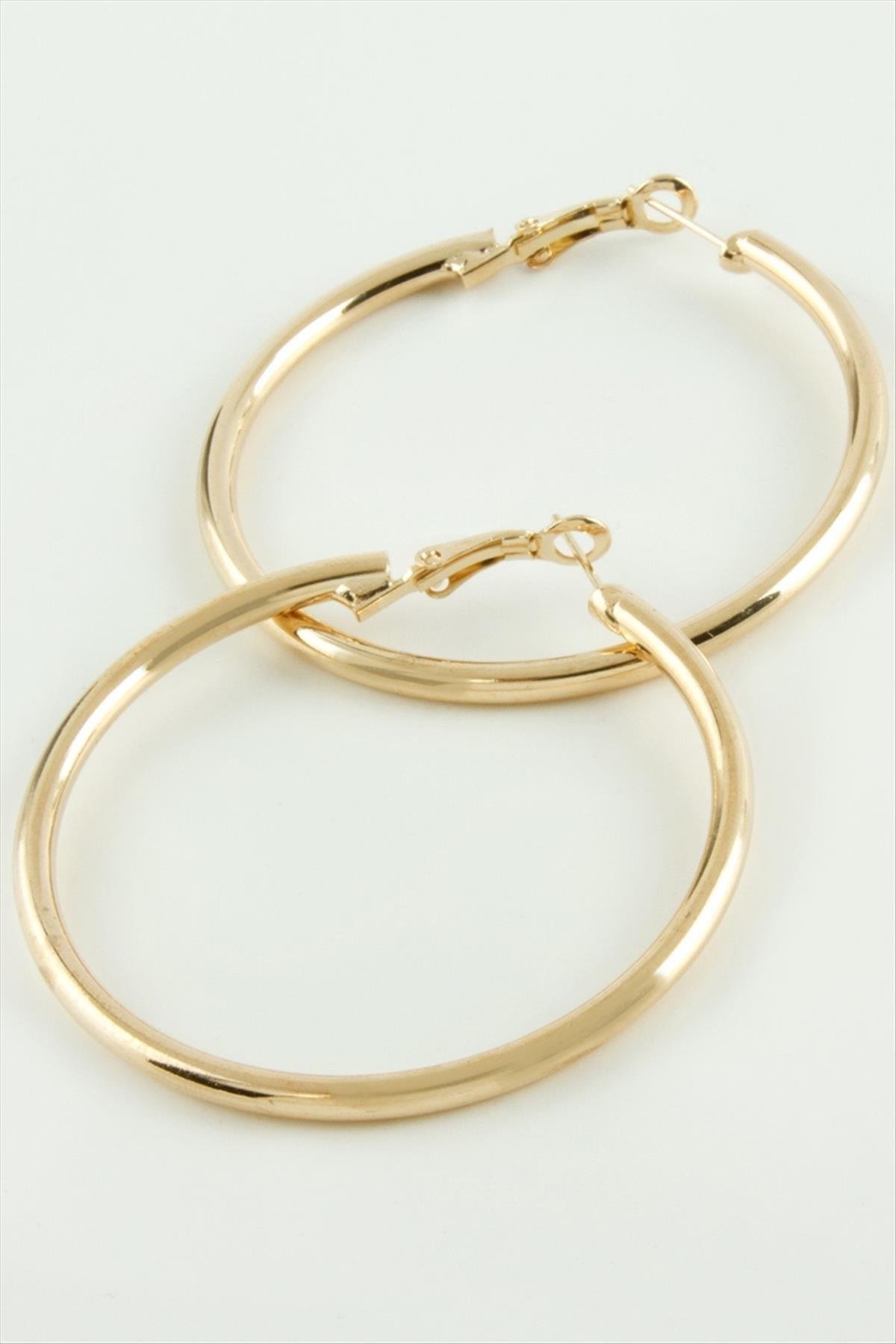 Boru Kalın Halka Küpe 4,5 cm-Sarı