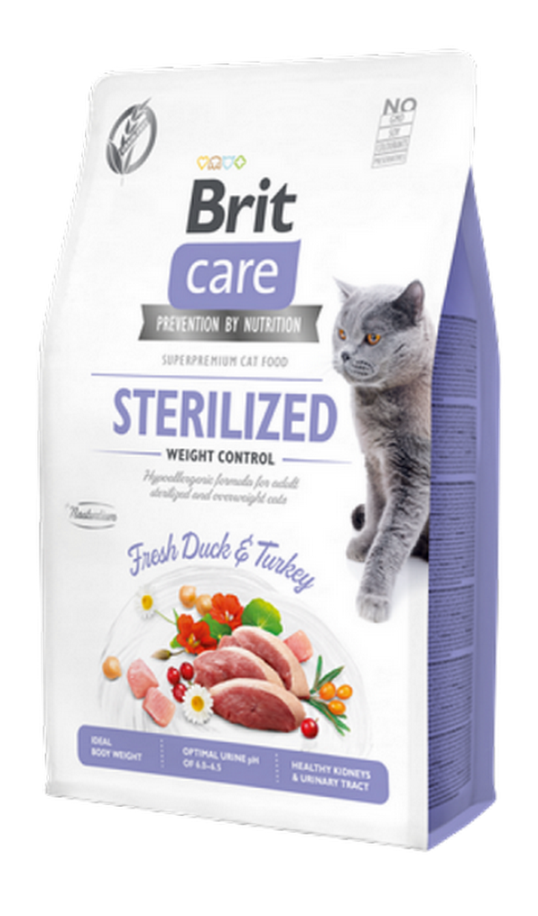 Brit Care 2 kg Kilo Kontrolü İhtiyacı Olan Kısırlaştırılmış Kediler İçin, Tahılsız, Hipoalerjenik, Taze Ördek Etli Ve Hindi Etli Kuru Mama