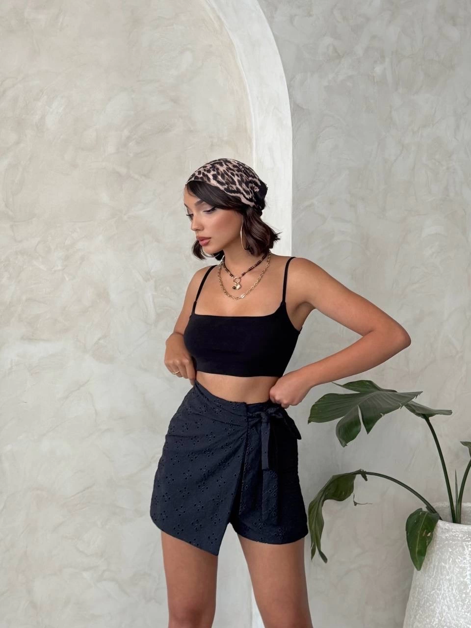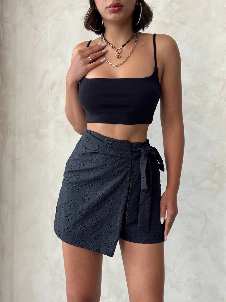 Brodeli şort etek s255075 Siyah (Beden: M)