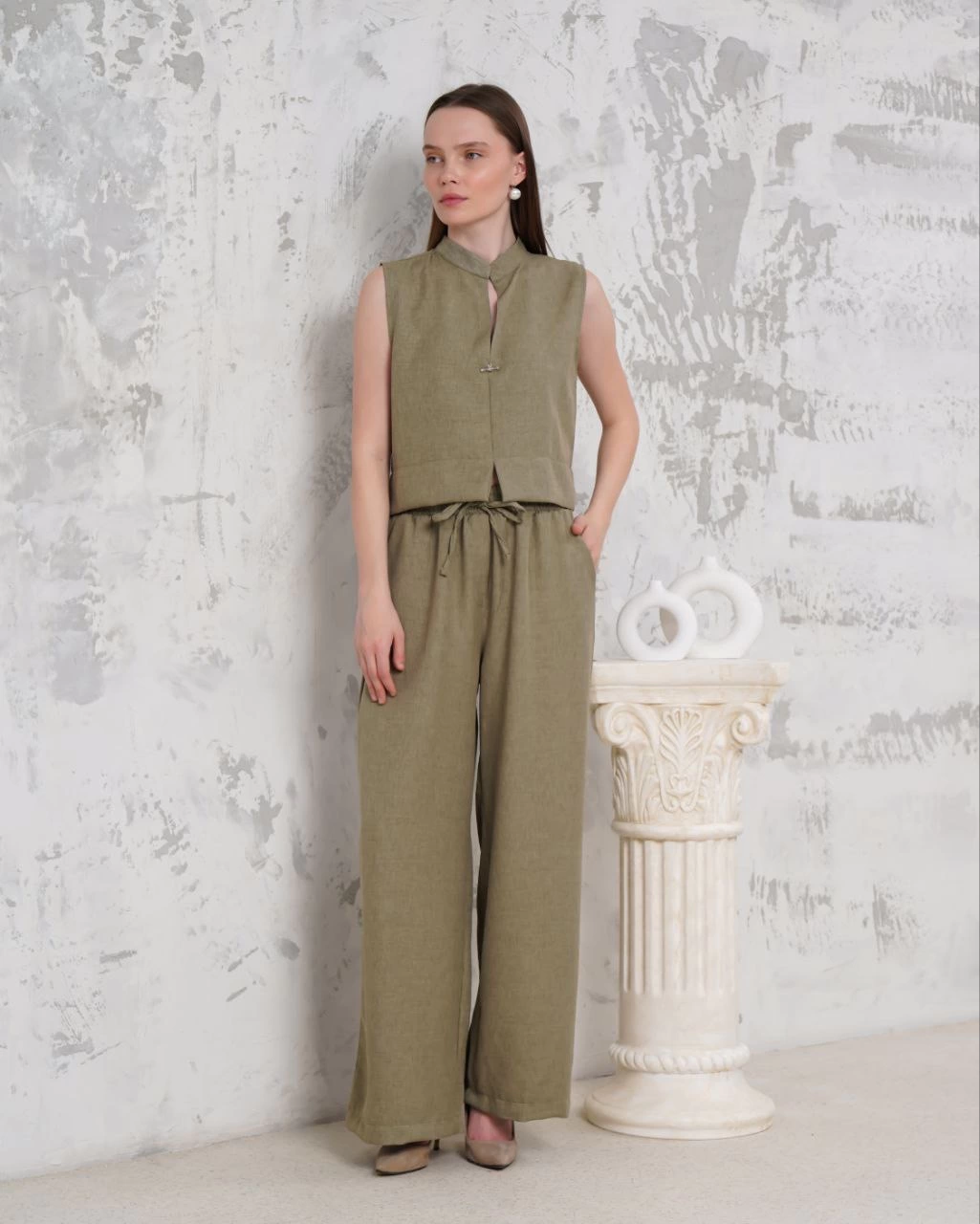 Broşlu yelek pantolon takım haki s255821 (Beden: S)