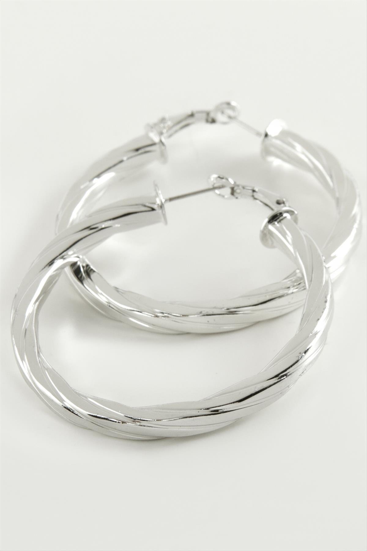 Burgulu Halka Küpe 5 cm-Gümüş Rengi