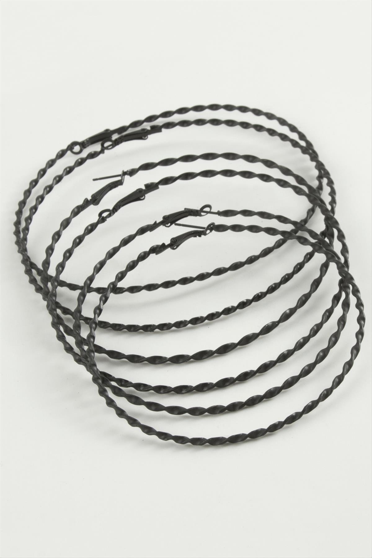 Burgulu Metal Halka Küpe 6 Adet-Siyah