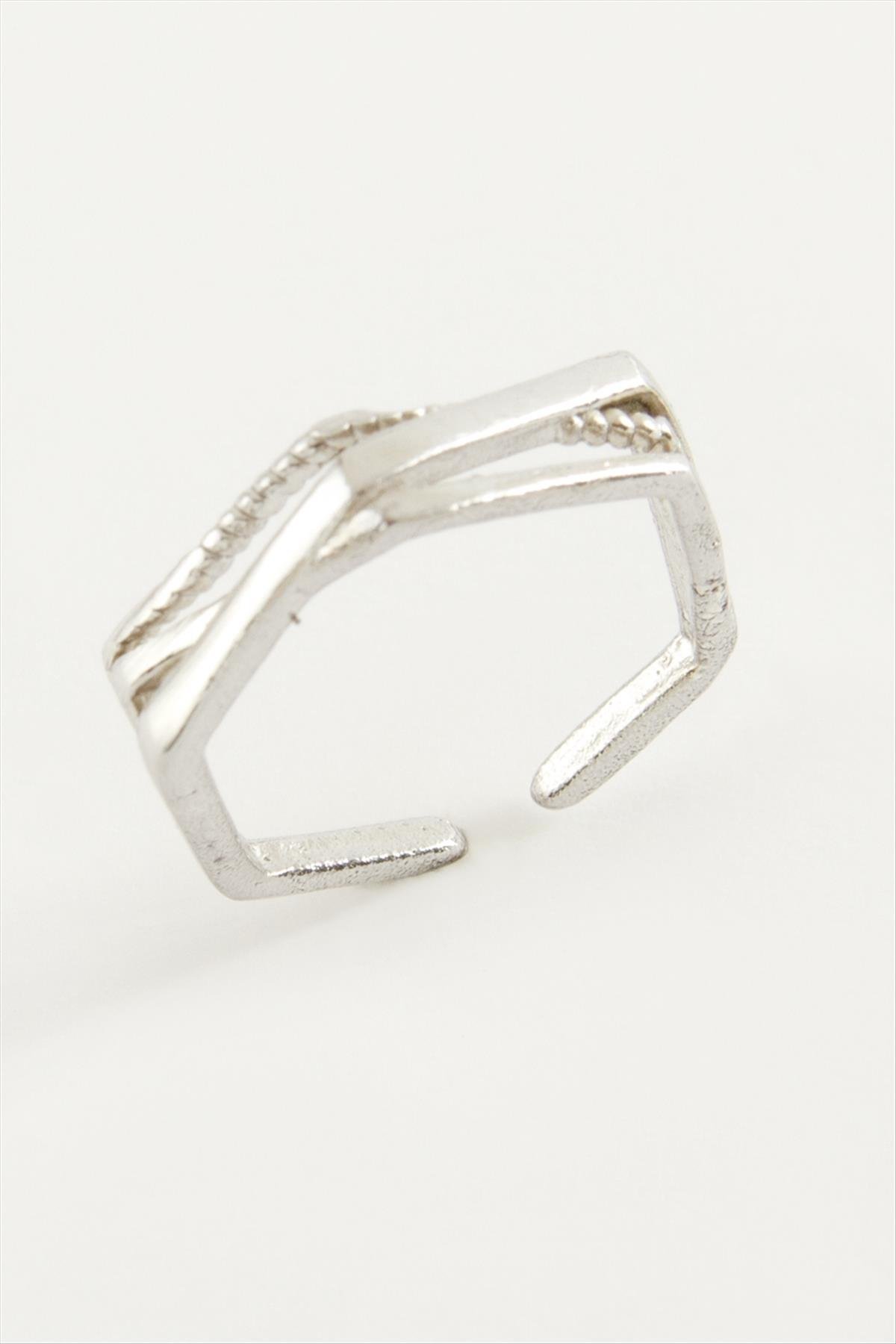 Burgulu Metal Yüzük-Gümüş Rengi
