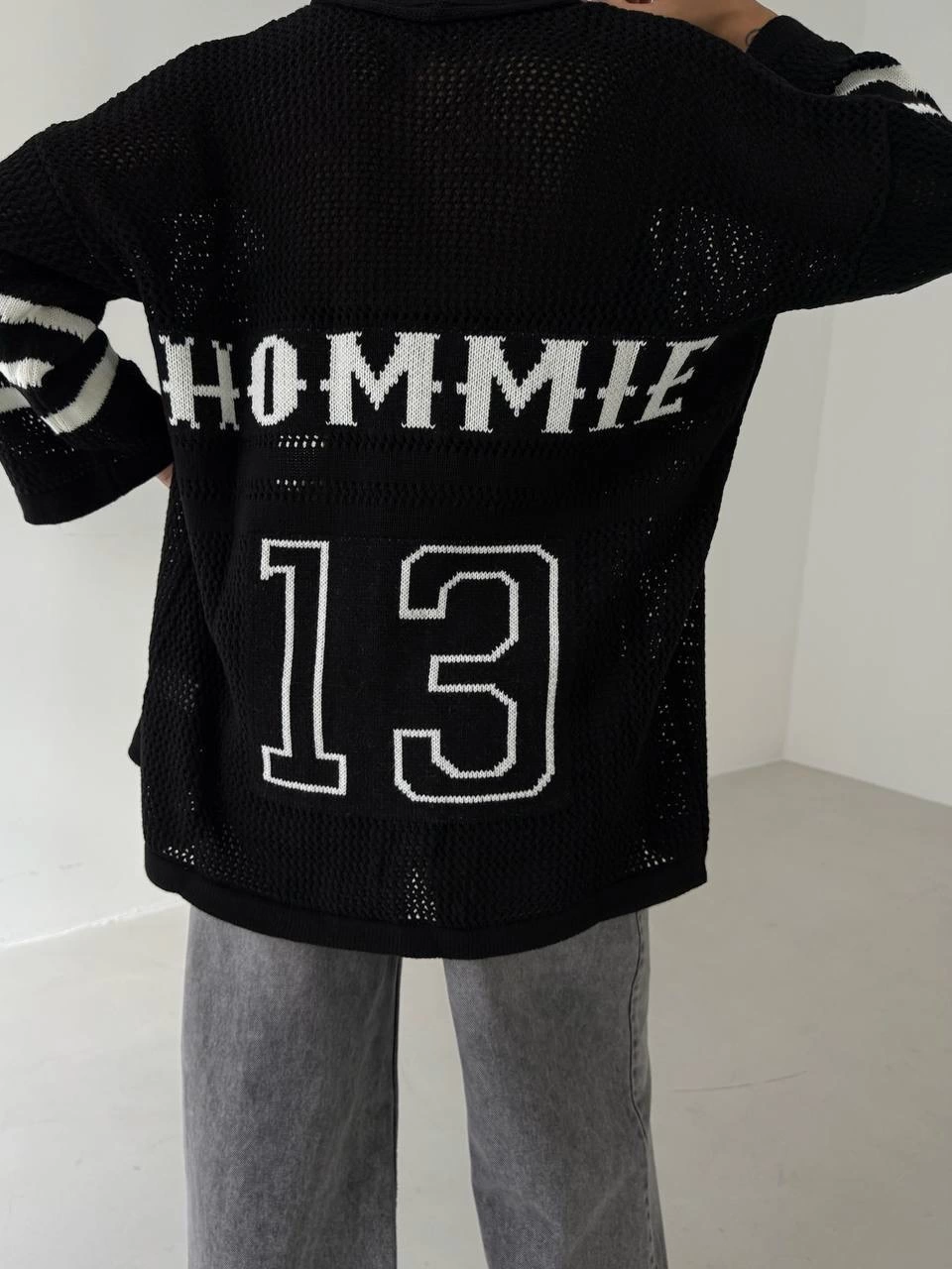 Büyük düğmeli salaş triko hırka siyahbeyaz (Beden: STANDART)