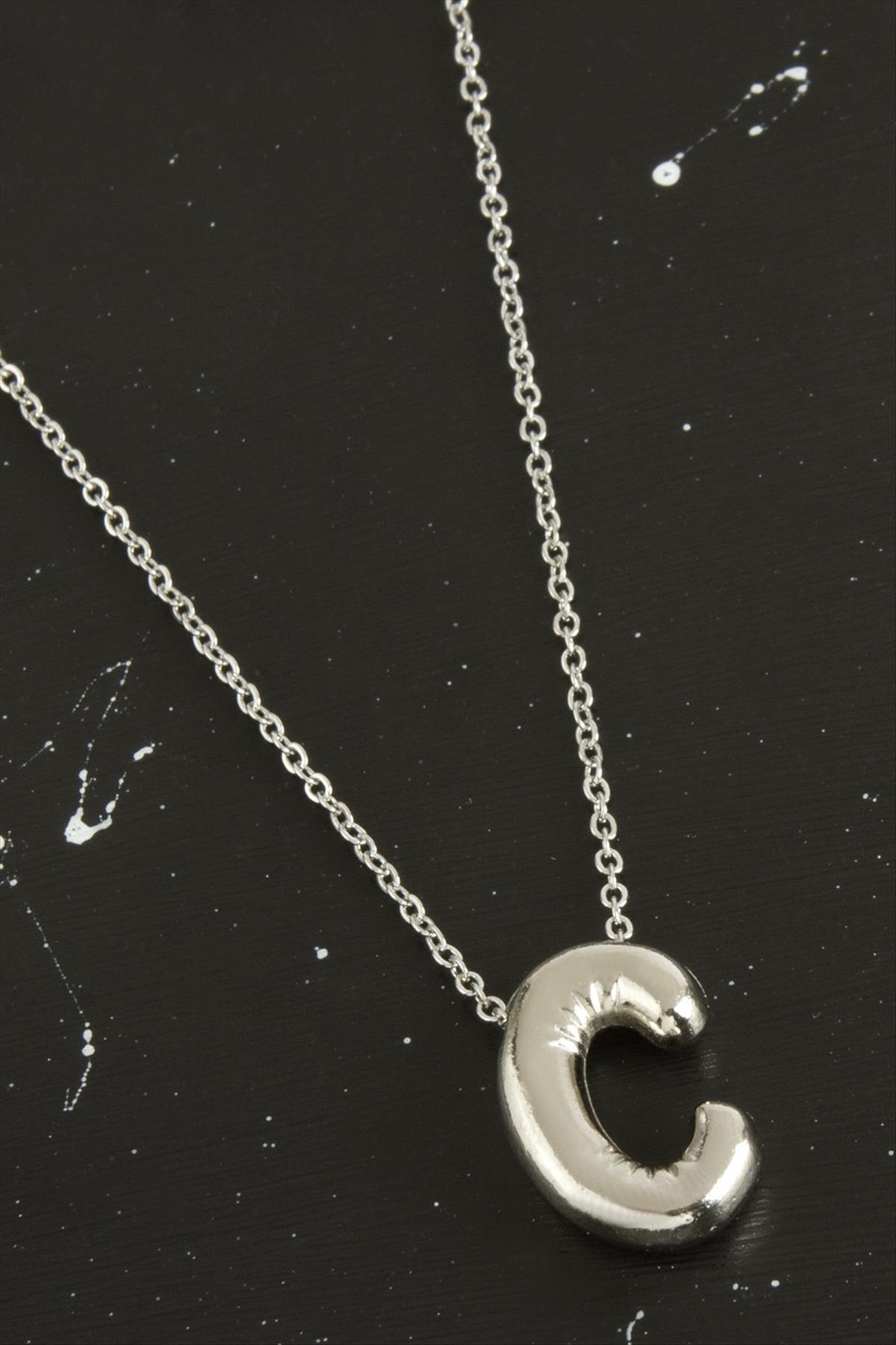 Kolye; Malzemesi metaldir. Ürün harf kalınlığı 0,5 cm ve harf boyu 2 cm dir. Ürün zincir uzunluğu 40-45 arasıdır.