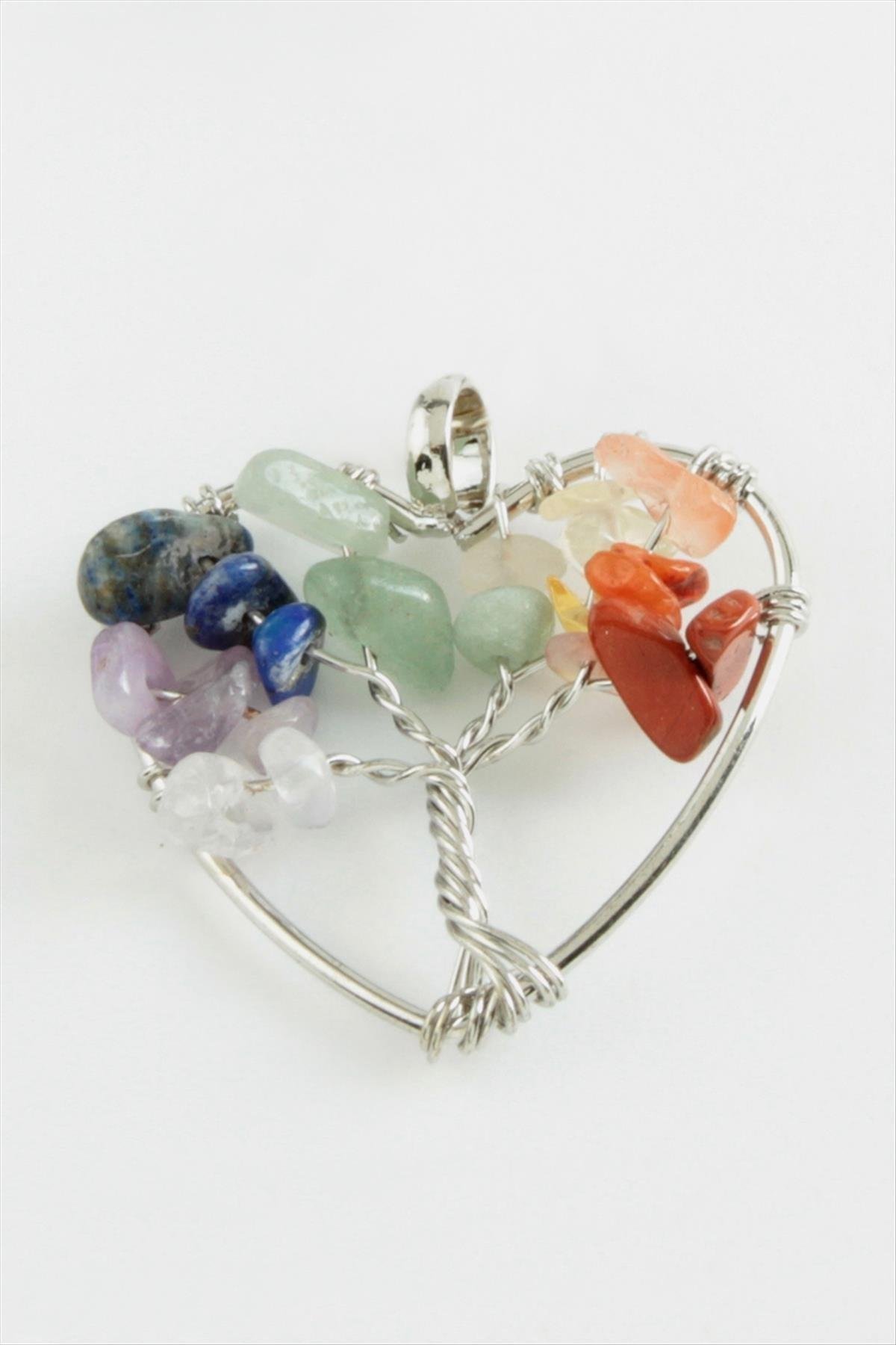 Çakra Kalp Doğaltaş Kolye Ucu-Gümüş Rengi