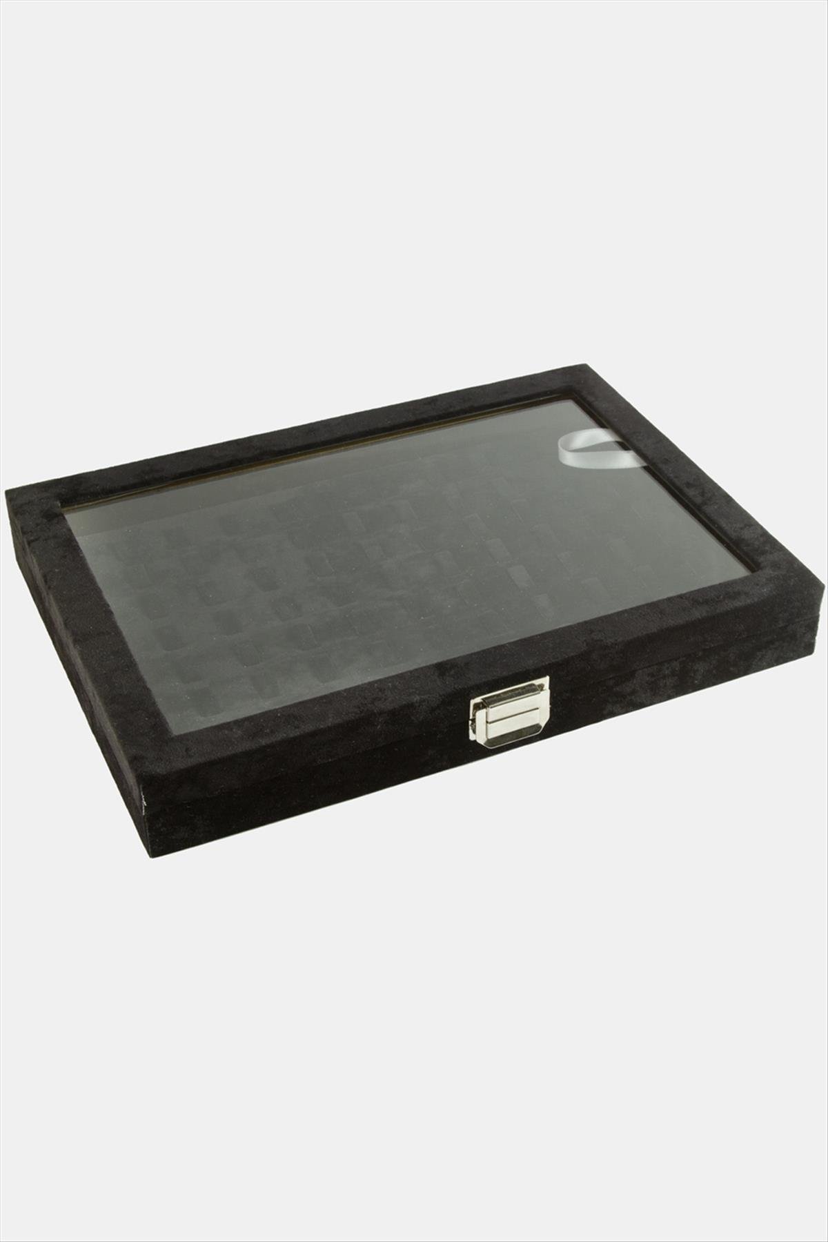Cam Kapaklı Anfora Kumaş Tırnaklı Yüzük Standı 24X34 cm-Siyah