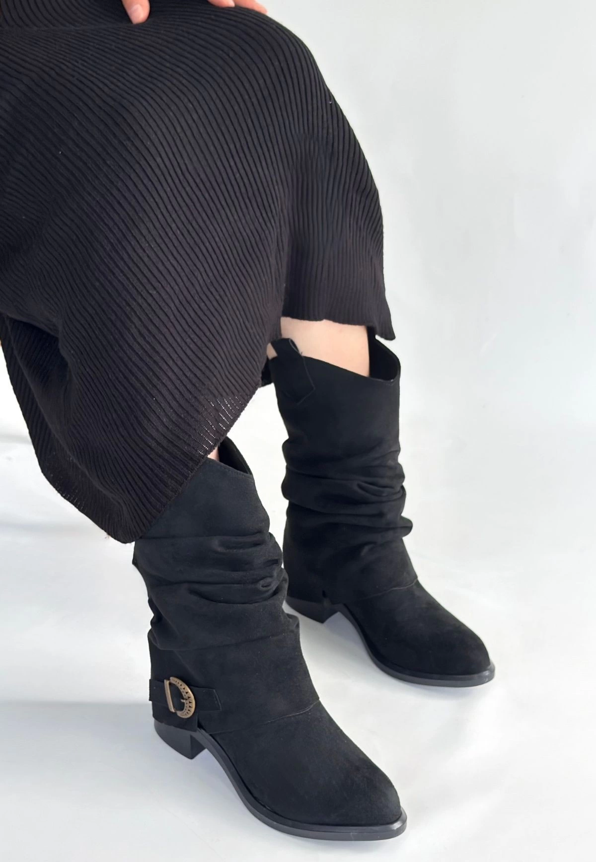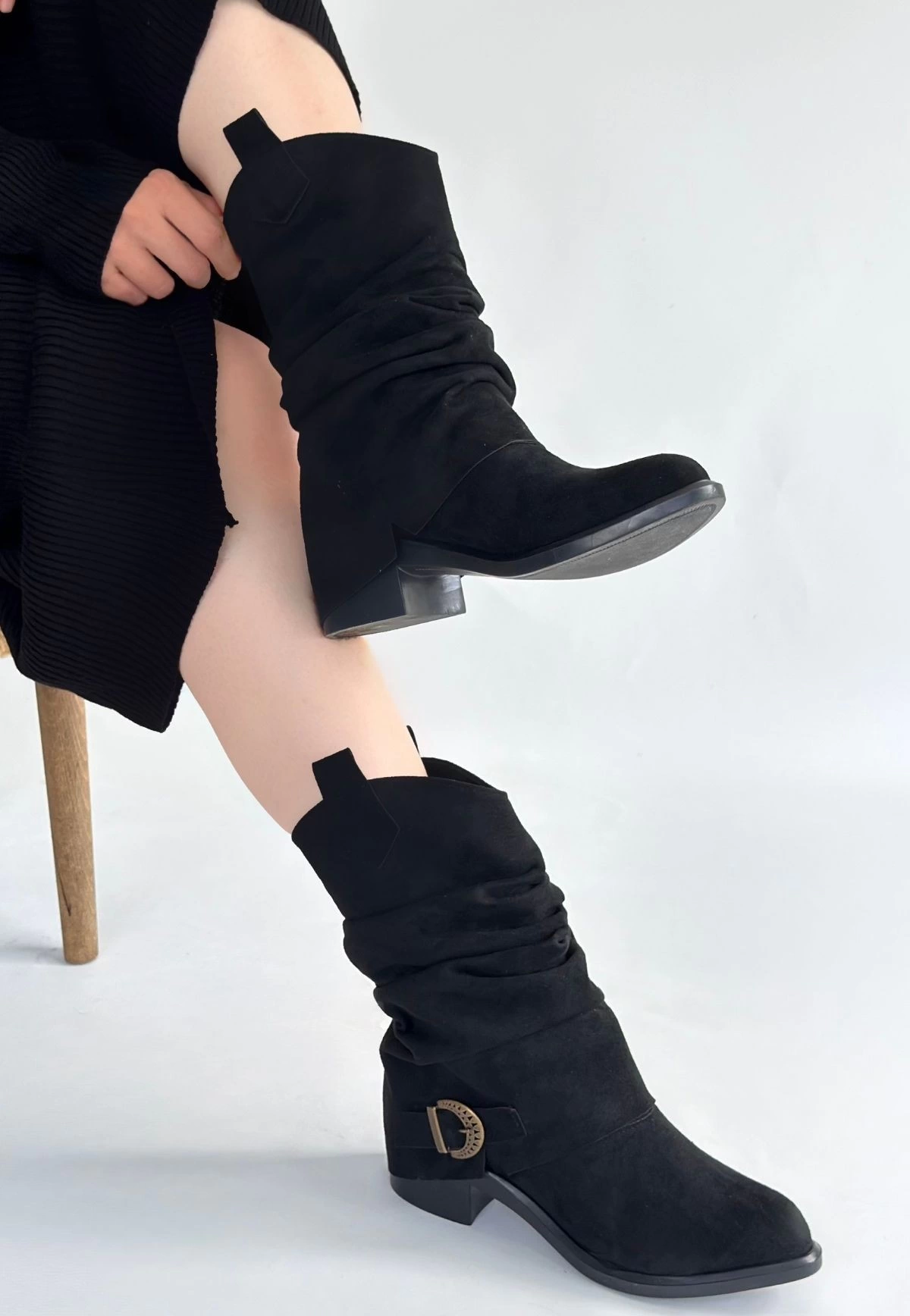 Canty Siyah Süet Körüklü Topuklu Çizme (Numara: 39)