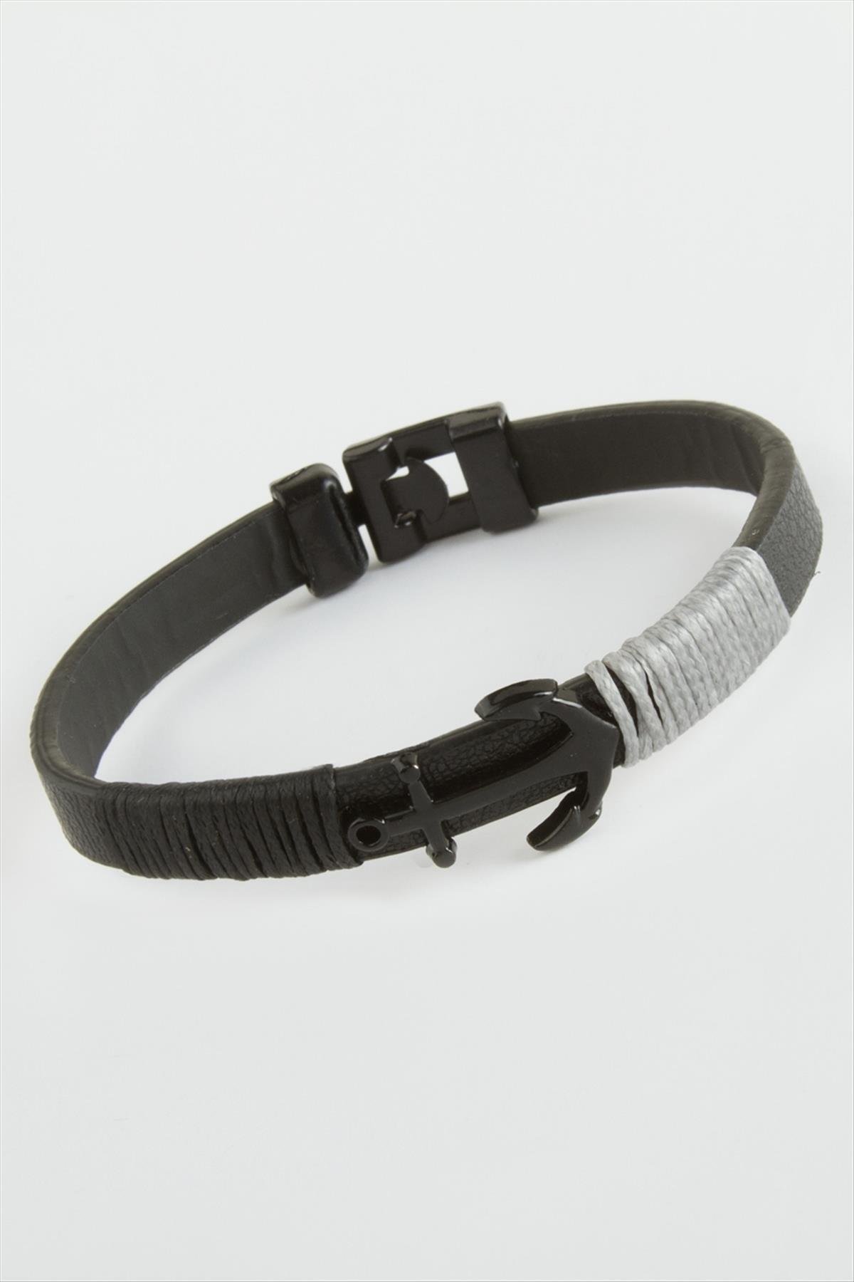 Çapa Kaliteli Suni Deri Bileklik-Siyah