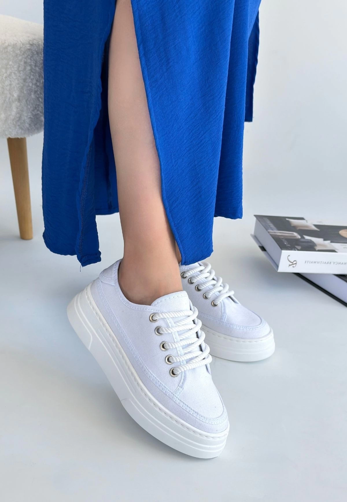 Carin Beyaz Keten Bağcıklı Spor Ayakkabı (Numara: 36)