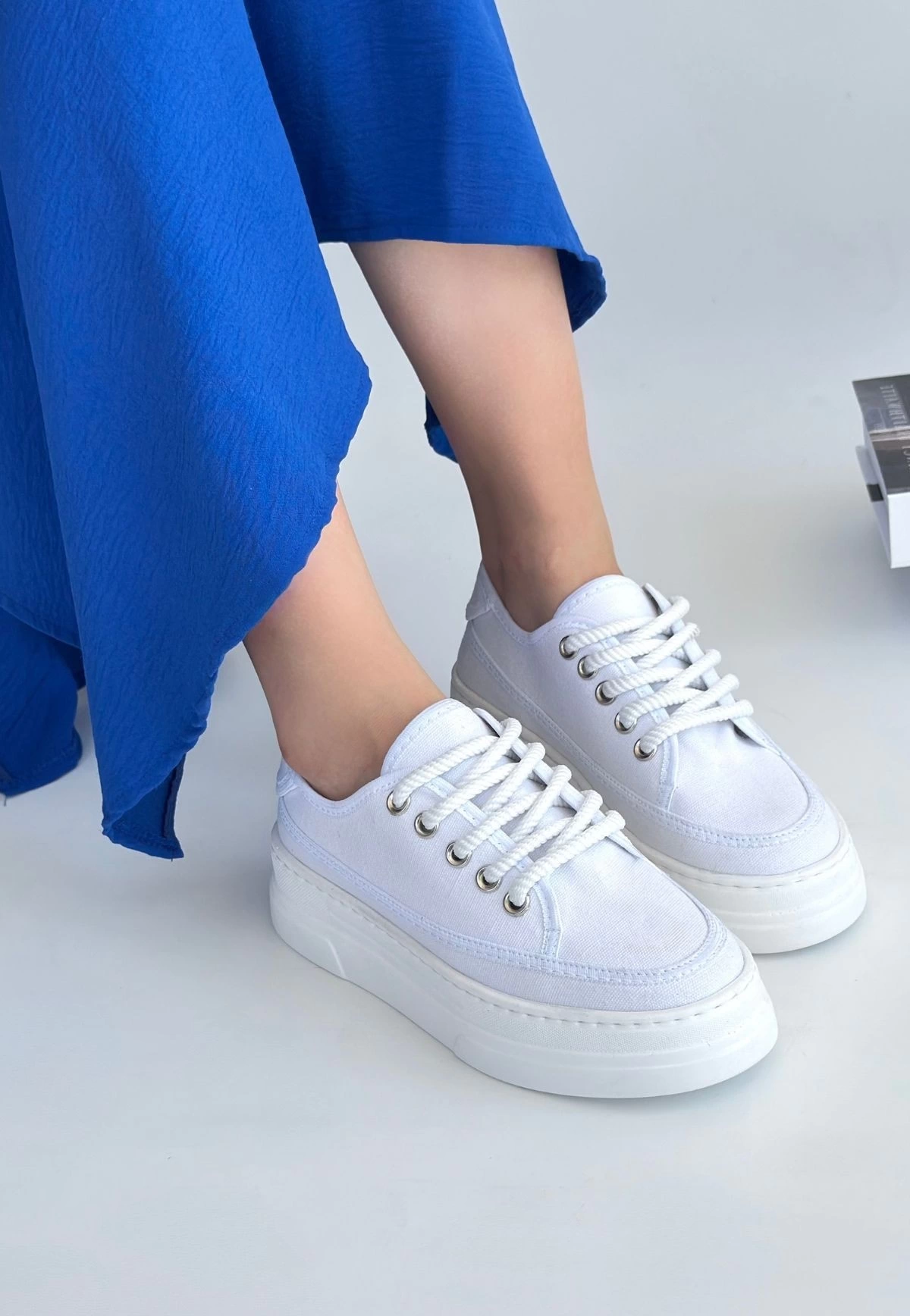 Carin Beyaz Keten Bağcıklı Spor Ayakkabı (Numara: 40)