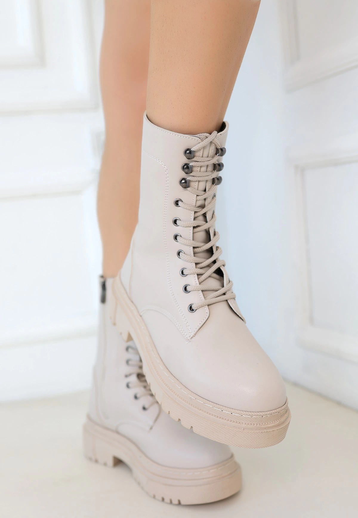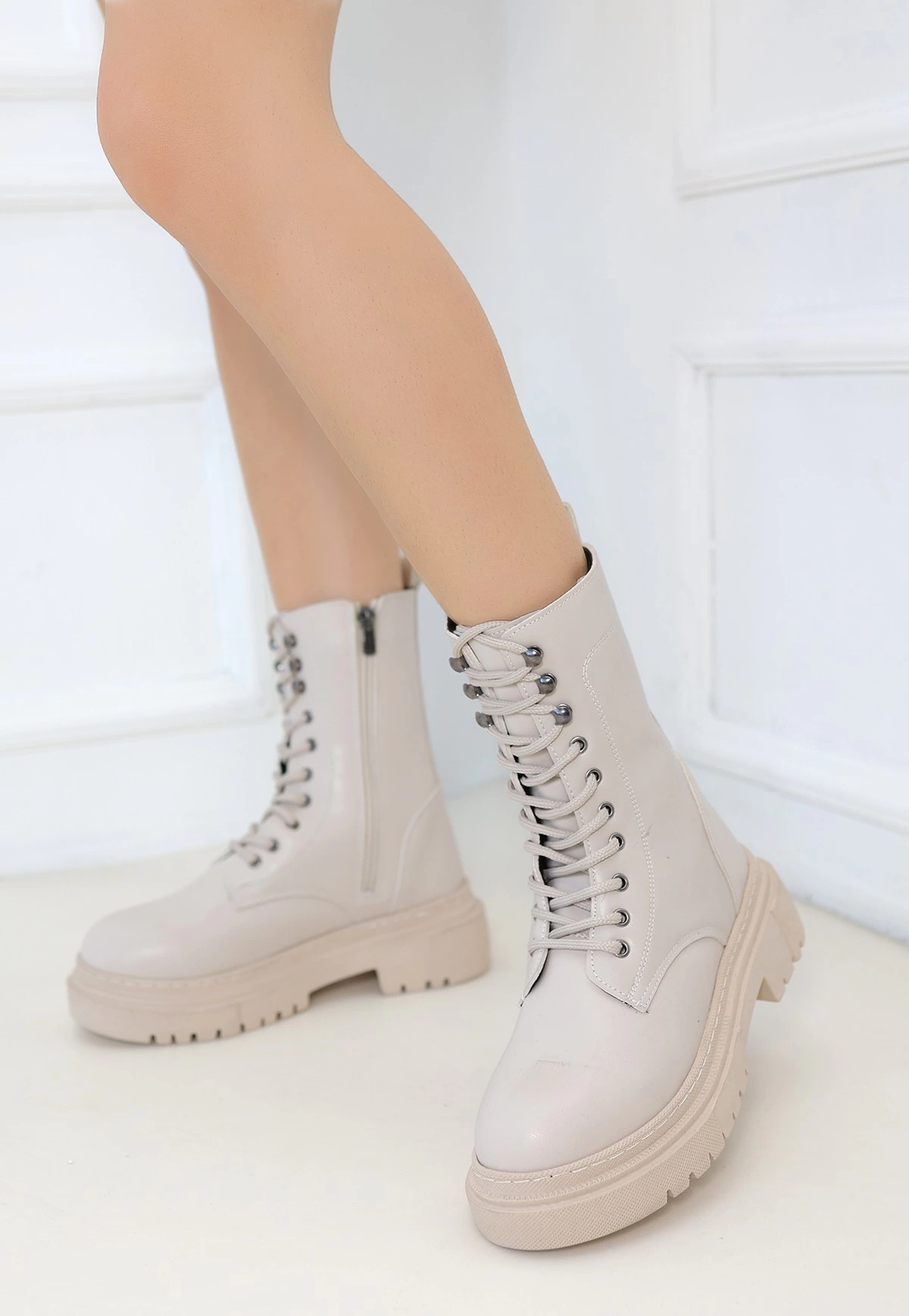 Caxa Bej Cilt Bağcıklı Bot (Numara: 39)