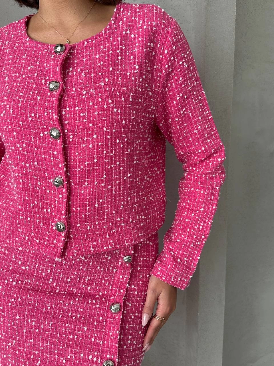 Ceketli etek takım chl kumaş fuşya h24443 (Beden: S)